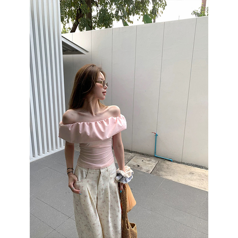 新款 t恤女2025夏季 设计感上衣 一字肩短袖 MosesQueen魔西女王法式
