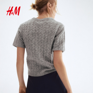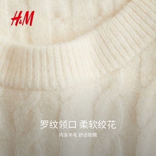 打底衫 HM女装 圆领绞花针织毛衣套衫 春季 1293385 毛针织衫