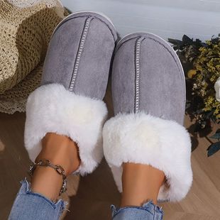 Women Warm Fluffy Suede Faux Slippers Fur Flat Winter 2023
