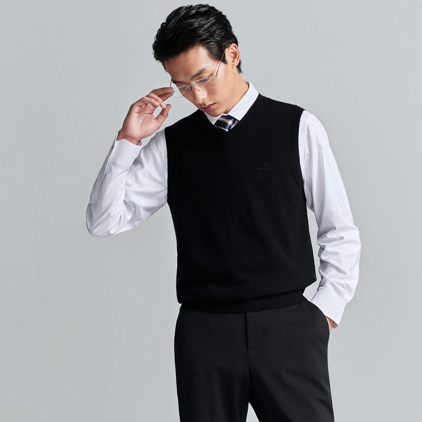 100%羊毛背心 针织衫 报喜鸟秋季 商务男士 可机洗打底马甲男 新款