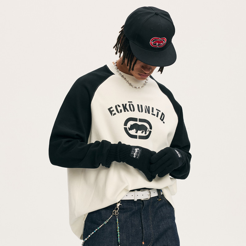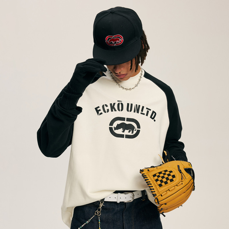 长袖 撞色美式 t恤男女情侣装 2025秋季 上衣 ecko红犀牛 新款 黑白经典