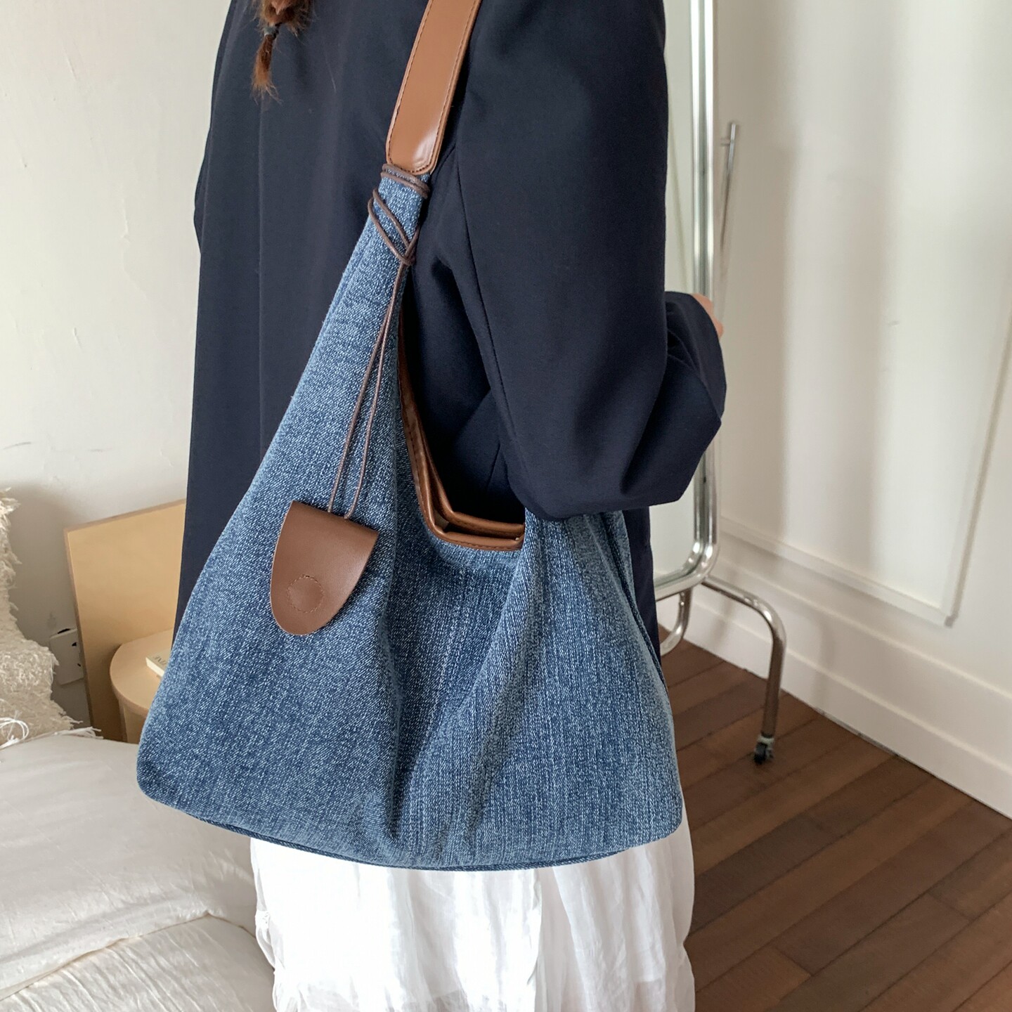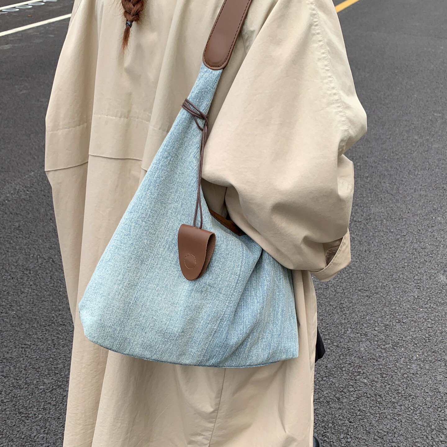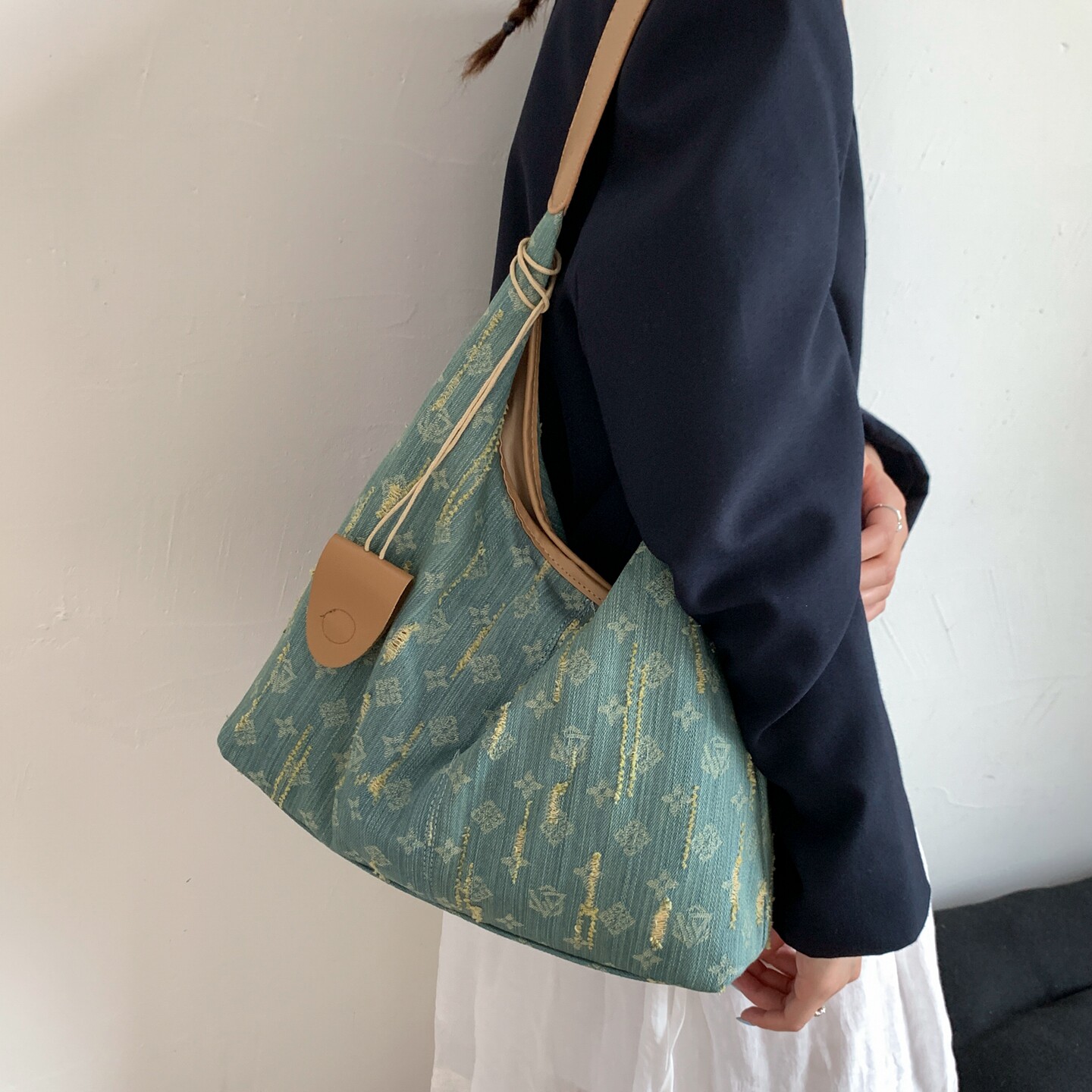 松弛感大容量通勤包包女2026新款 潮休闲帆布托特包学生上课单肩包