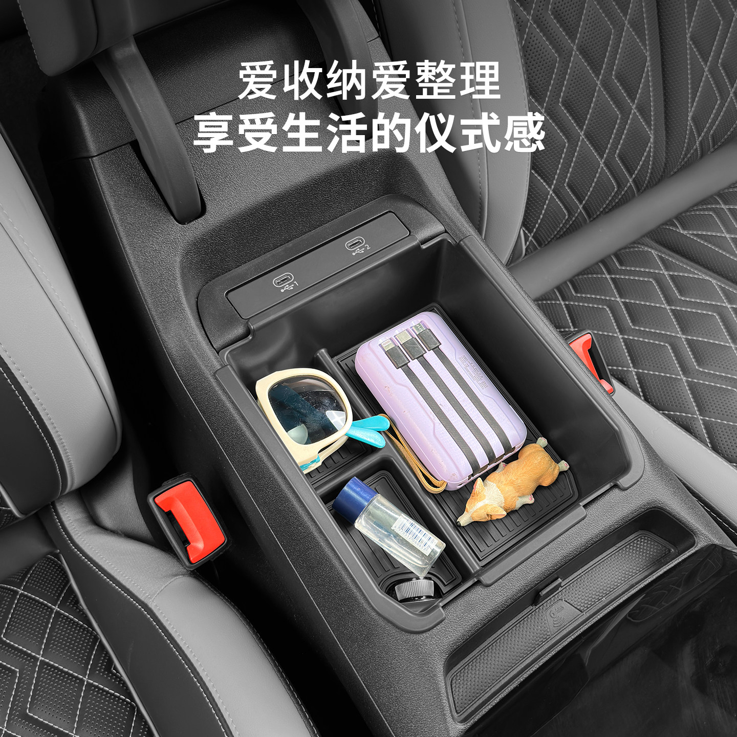 适用于奥迪A5L上汽 一汽扶手箱储物盒ABS中控收纳盒硅胶用品配件