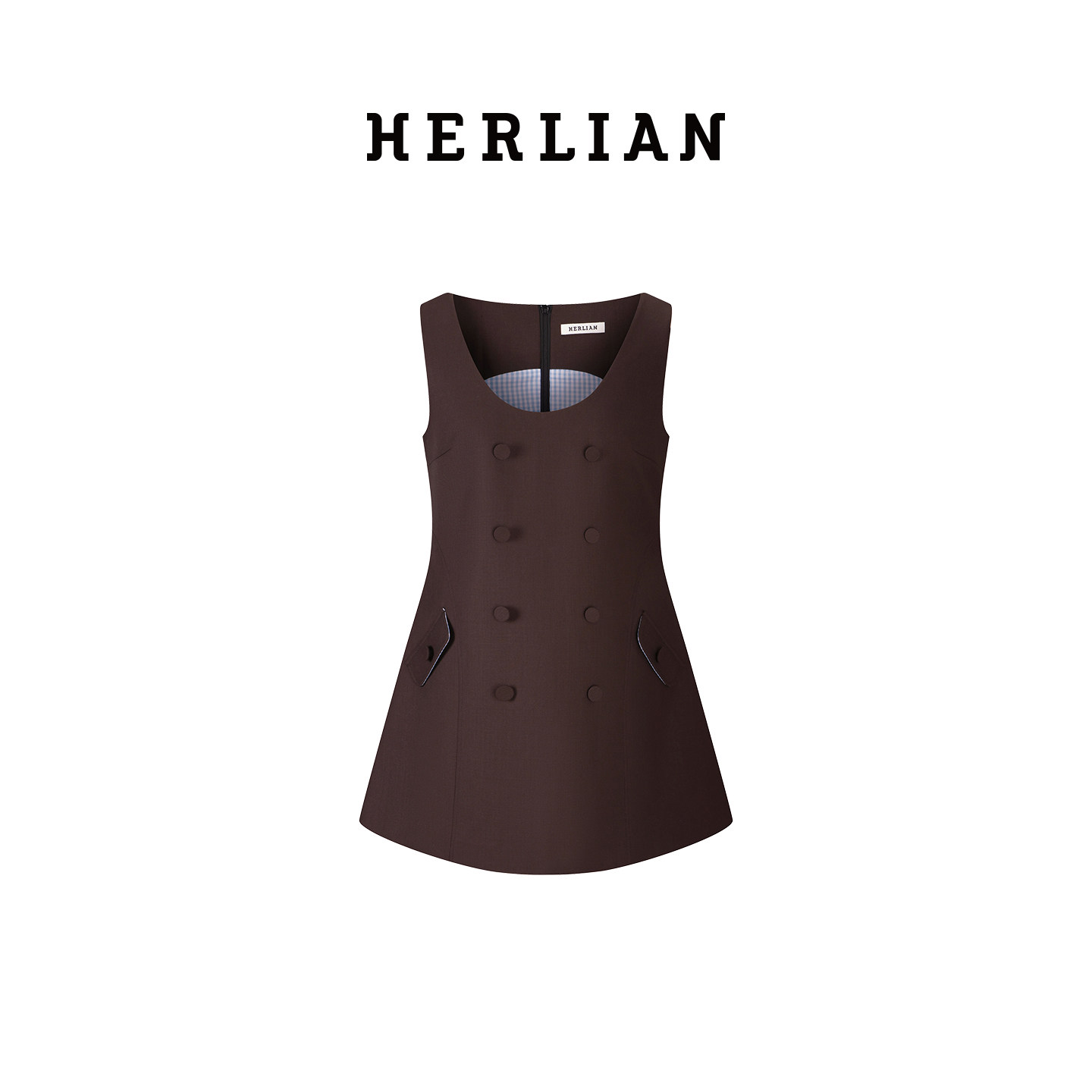 女士双排扣廓形无袖 新品 HERLIAN秋季 连衣裙 杨超越同款