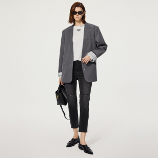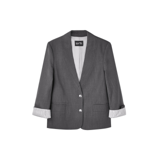 新款 外套女复古设计感通勤休闲上衣尤缇2025秋季 TI无领灰色西装