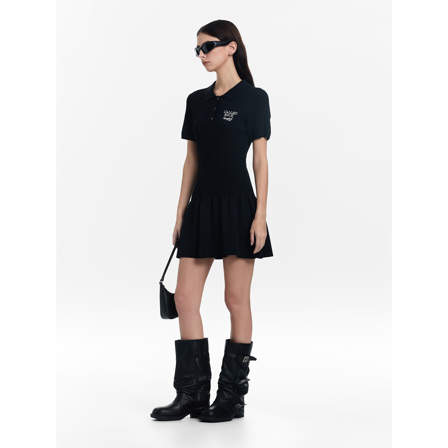 修身 polo领连衣裙女2026春夏新款 学院复古针织小黑裙 BACK CALLED