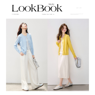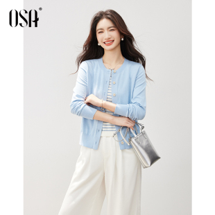 简约通勤圆领上衣 新款 OSA欧莎盐系假两件条纹针织衫 女2026年春季