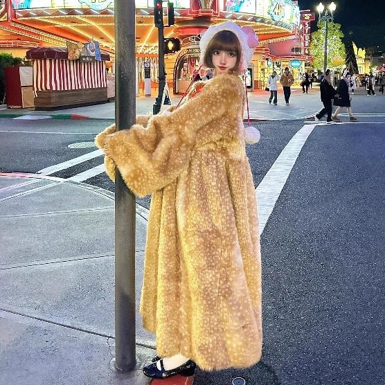 可爱兔耳朵羊羔毛外套女短款 宽松连帽2025冬新环保毛毛外套慵懒风