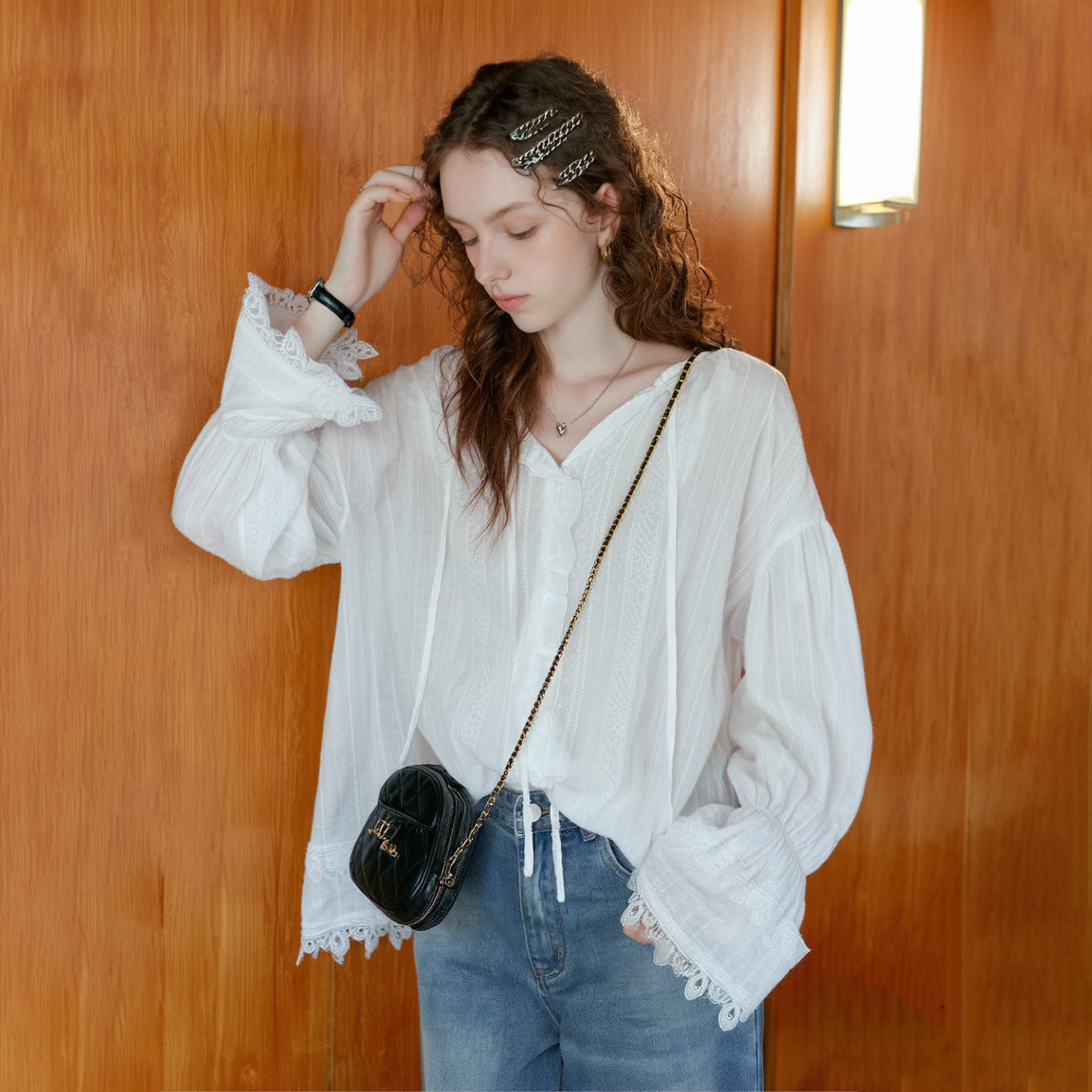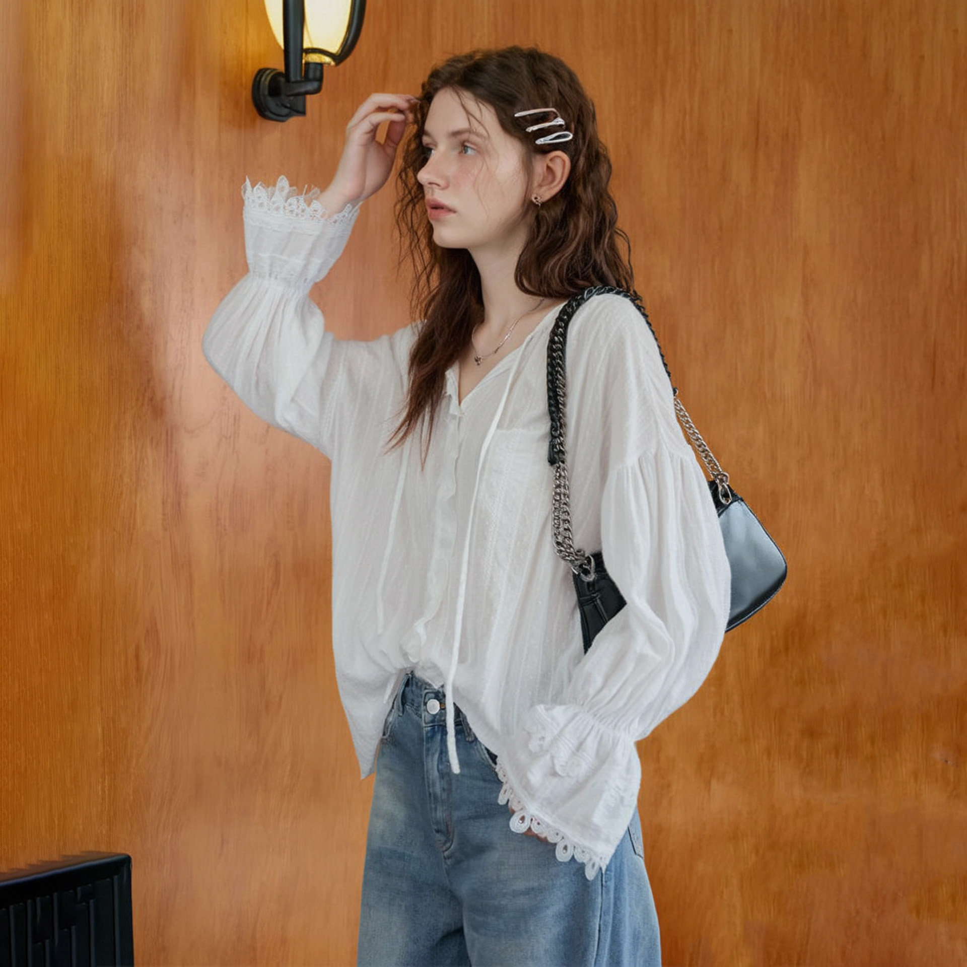 优雅蕾丝拼接长袖 法式 防晒衫 2025秋季 宽松显瘦上衣女 新款 卓芝
