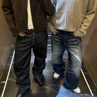 14oz养牛 五连麦穗扣原色重磅宽松直筒牛仔裤 自主原版 康龙面料
