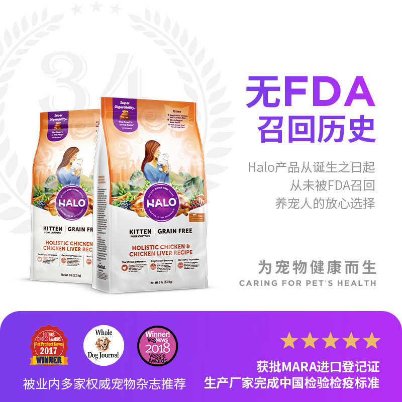 美国halo自然光环猫粮 健美无谷成幼猫粮鸡肉白鱼肉10磅 软便克星
