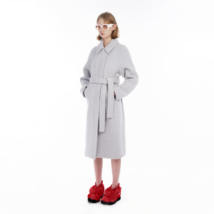 慵懒风双面羊毛大衣女中长款 灰色毛呢外套高级感