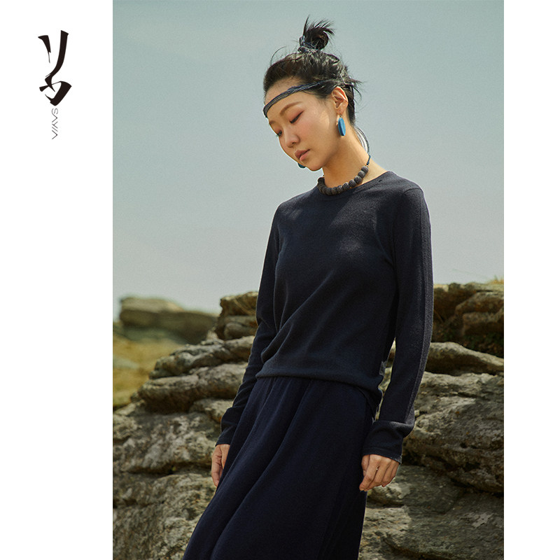 亲肤 Say 精纺纯羊绒休闲圆领套头打底衫 幻 显瘦