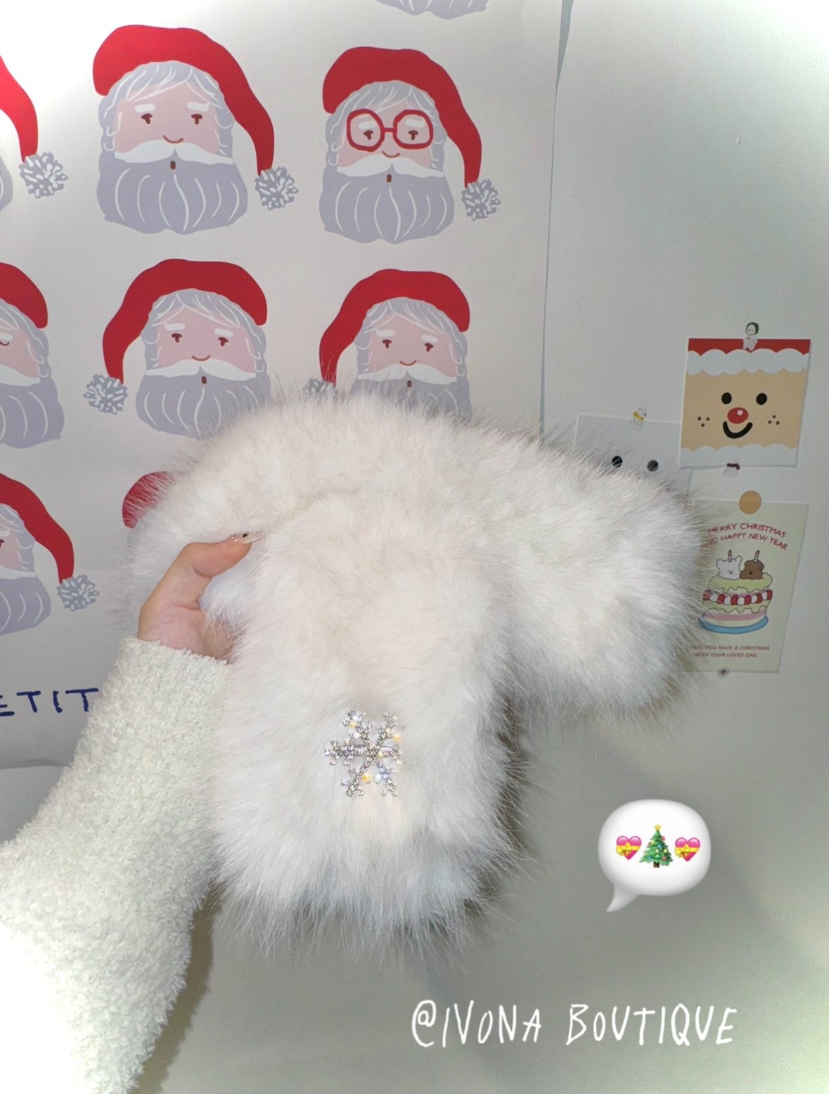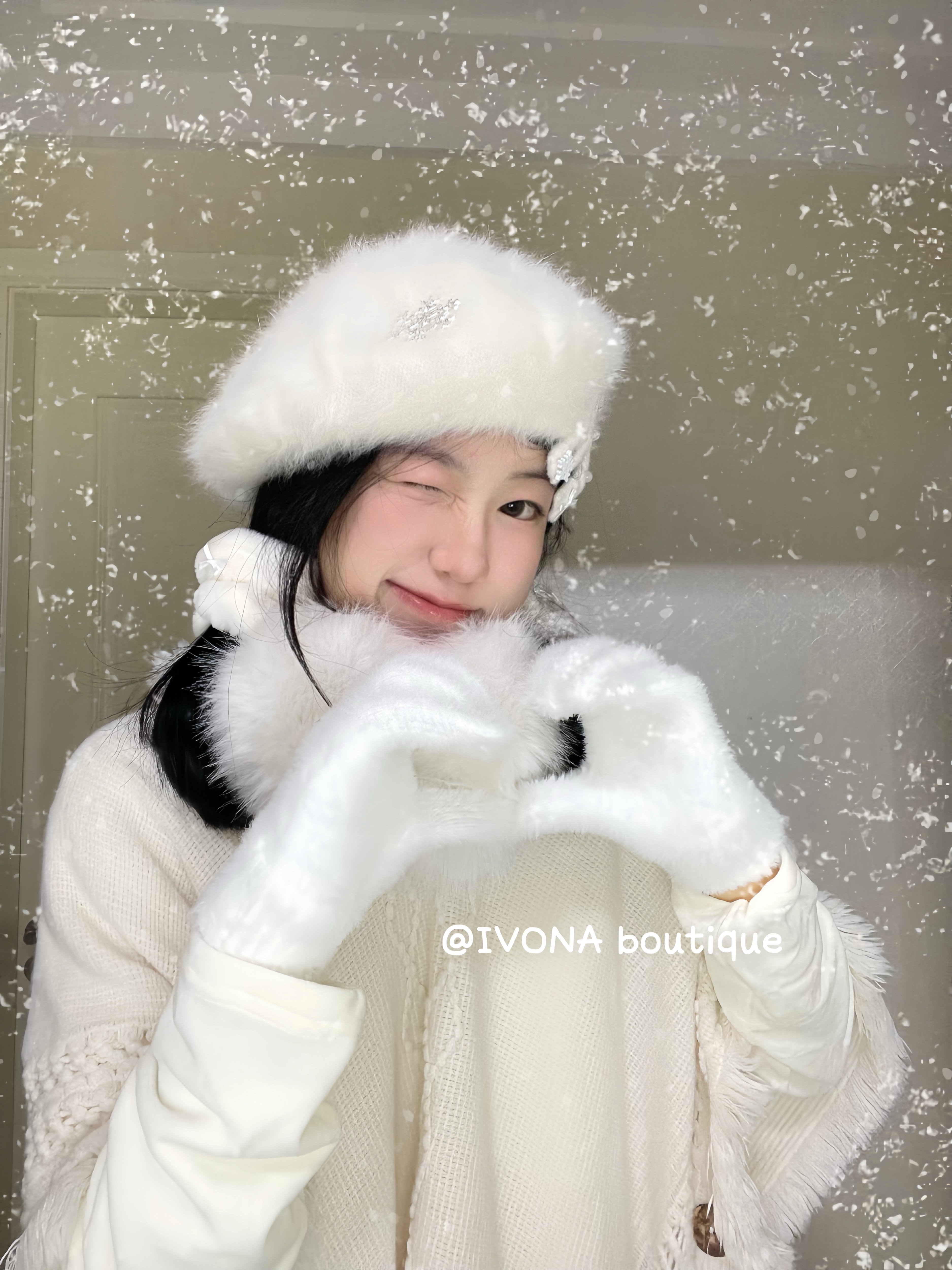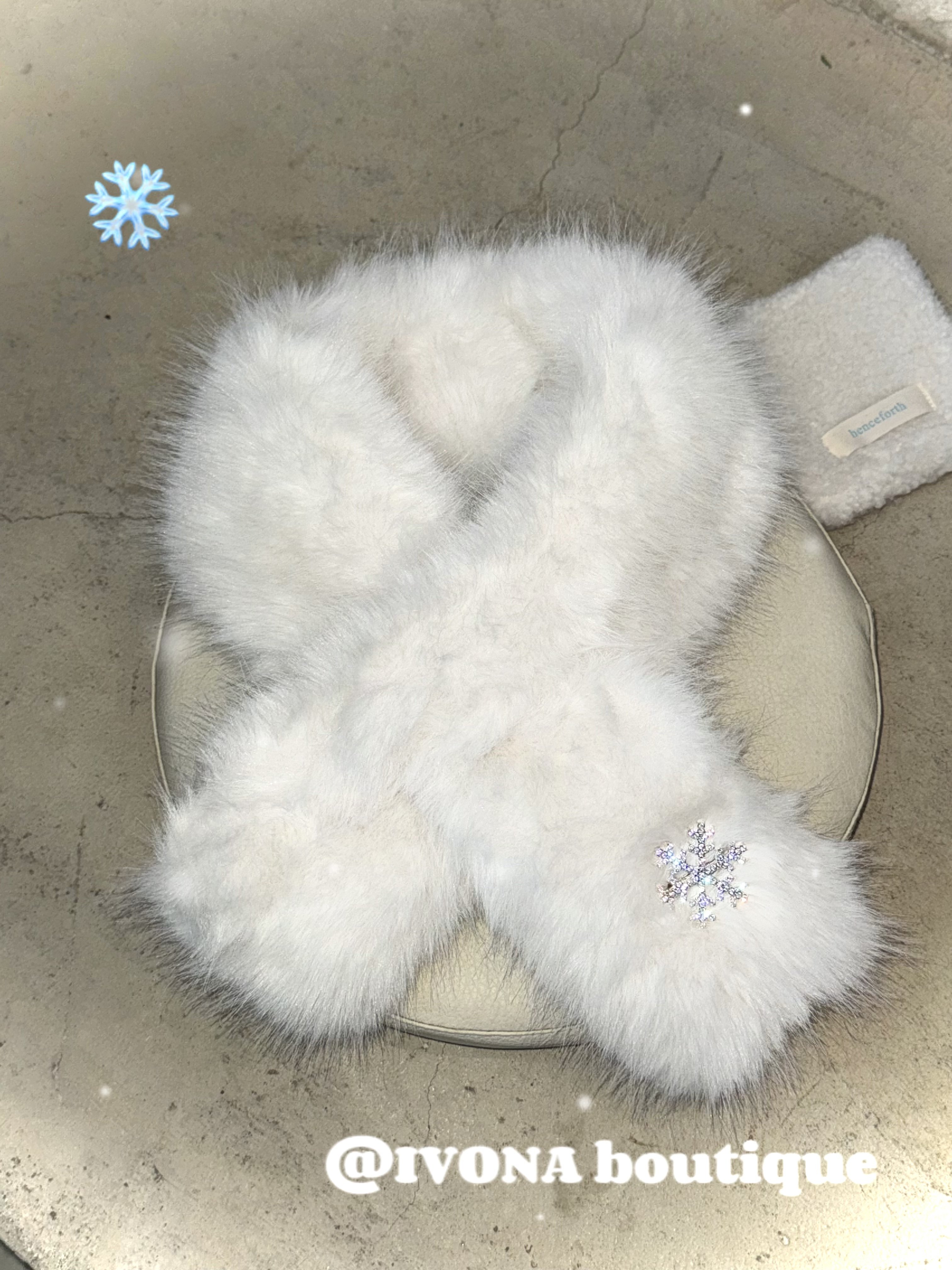 原创可爱雪花冬日百搭水钻毛绒白围巾 超保暖 IVONA 一片雪花