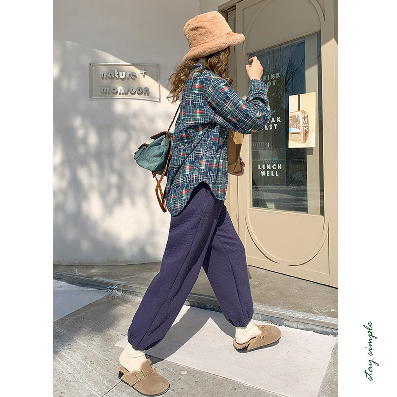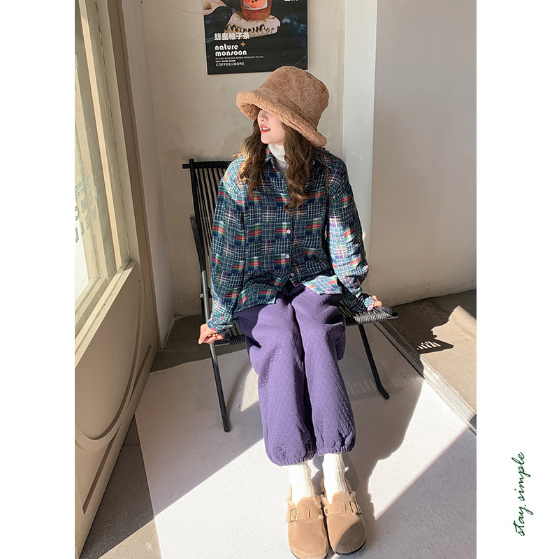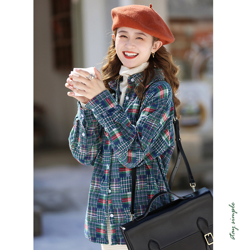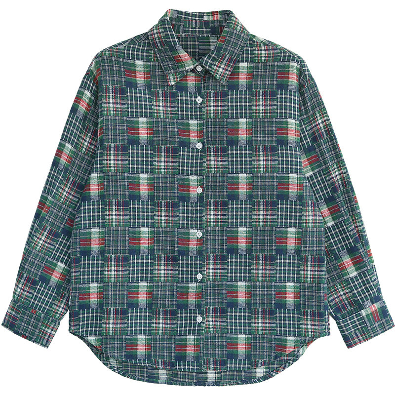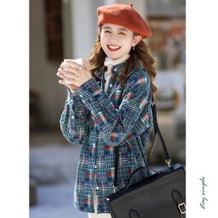 花吉B648蓝绿色圣诞结纯棉磨毛格子复古衬衫 秋冬衬衣 女2026新款
