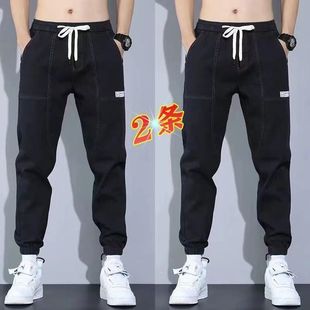 牛仔男裤 潮牌宽松百搭哈伦束脚裤 休闲拼接痞帅工装 韩版 男 裤 秋冬款