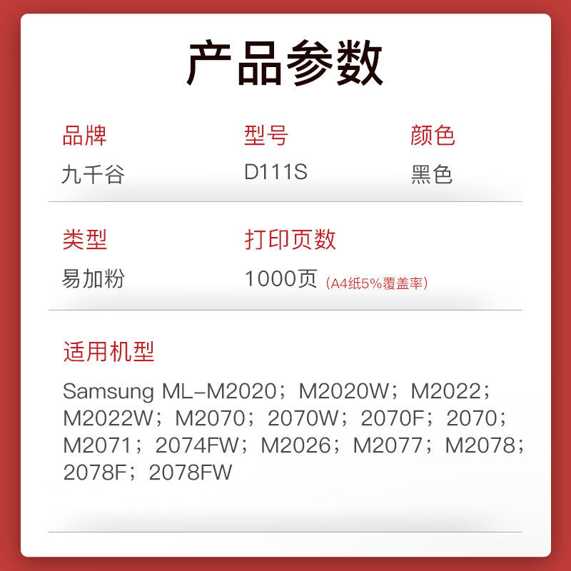 M2022 M2078F打印机硒鼓粉盒墨盒 D111S硒鼓 M2077 M2074FW M2071 M2020 M2070 适用三星M2071 MLT 九千谷