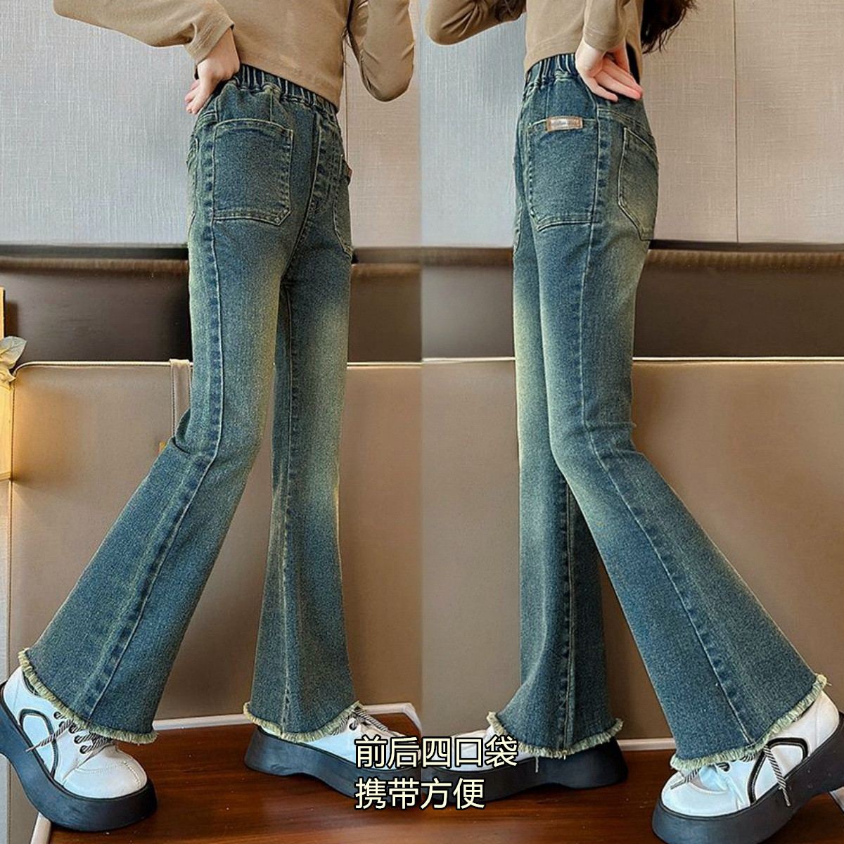 时尚 童装 宝宝长裤 女童牛仔裤 潮流微喇裤 喇叭裤 儿童韩版 子 春秋新款