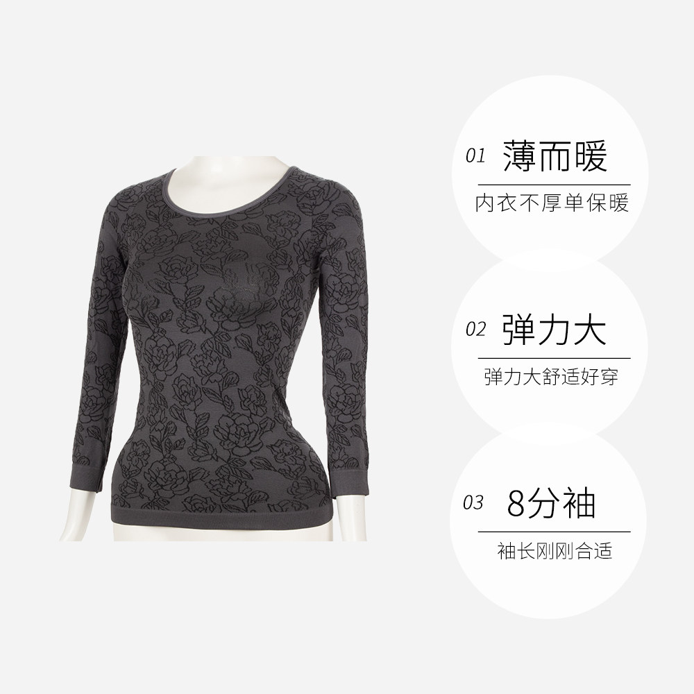 女士保暖内衣秋衣薄款 厚木日本进口8分袖 ATSUGI 保温内衣 自营