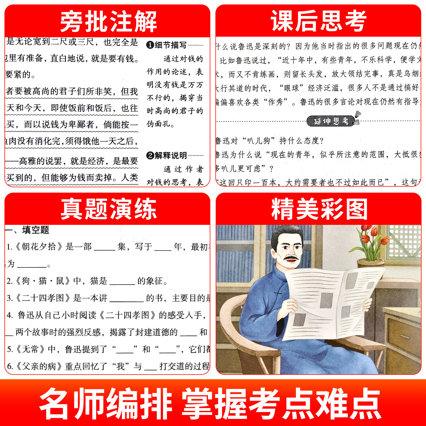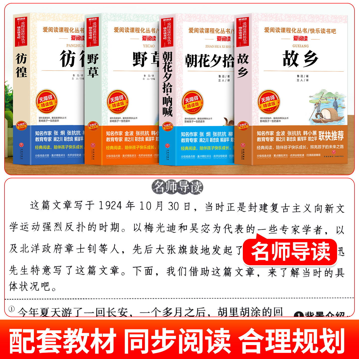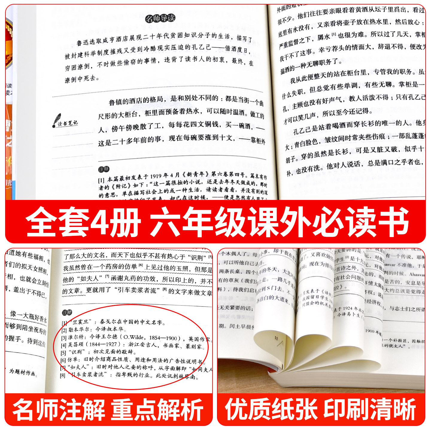 6年级7年级课外阅读书籍初中生版 全套4册 全集阿Q正版 朝花夕拾呐喊狂人日记六年级必读课外书鲁迅作品集经典 故乡野草鲁迅原著正版
