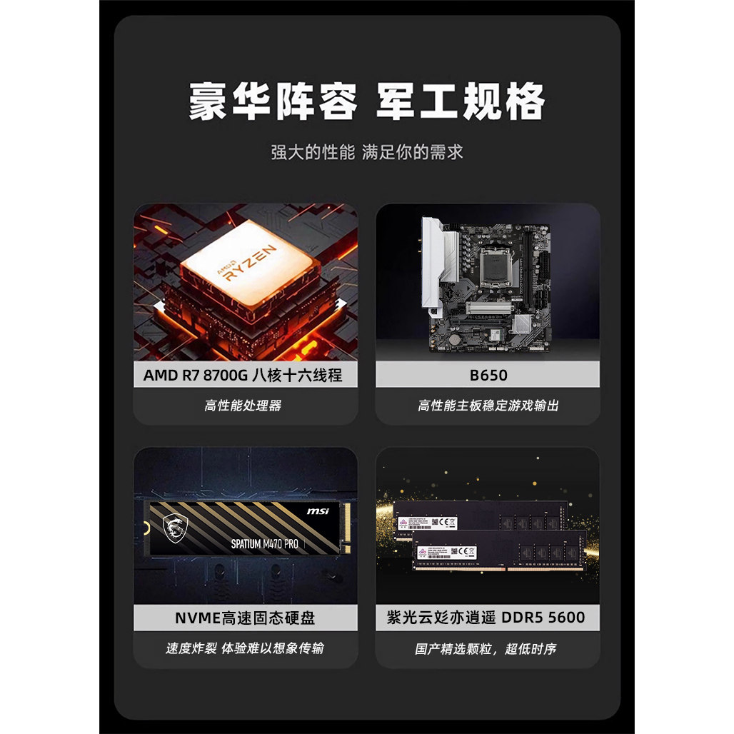机Ai电脑办公LOL电竞 电脑主机DIY组装 AMD锐龙8600G 8700G商用办公家用学校网课财务企业可多台采购设计台式