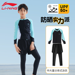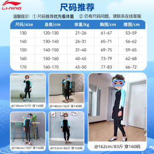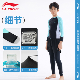李宁儿童游泳衣男童长袖 分体保暖青少年防寒中大童速干温泉 长裤