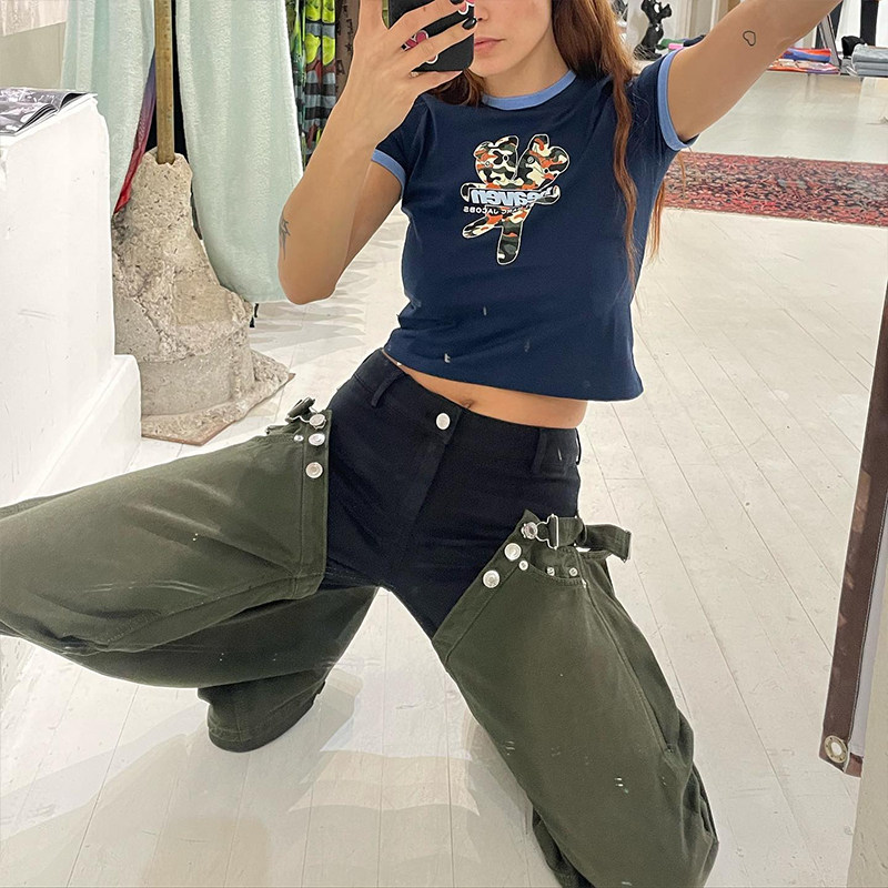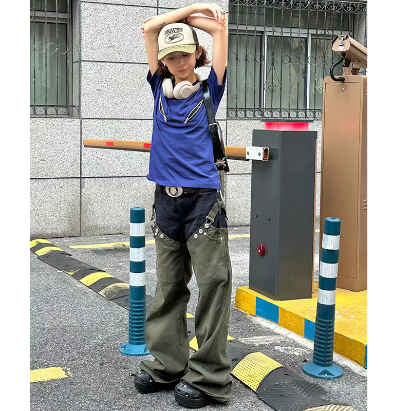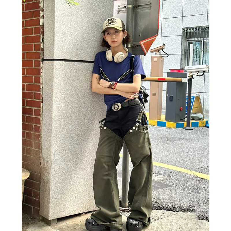 Y2K复古辣妹男女阔腿牛仔裤 碳酸同款 双头熊bella款 heavenm