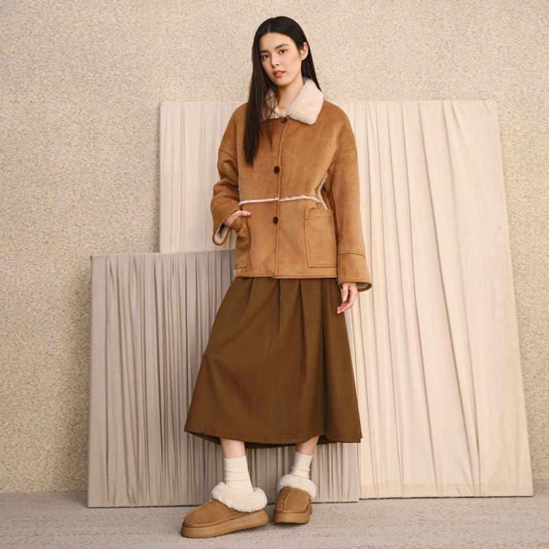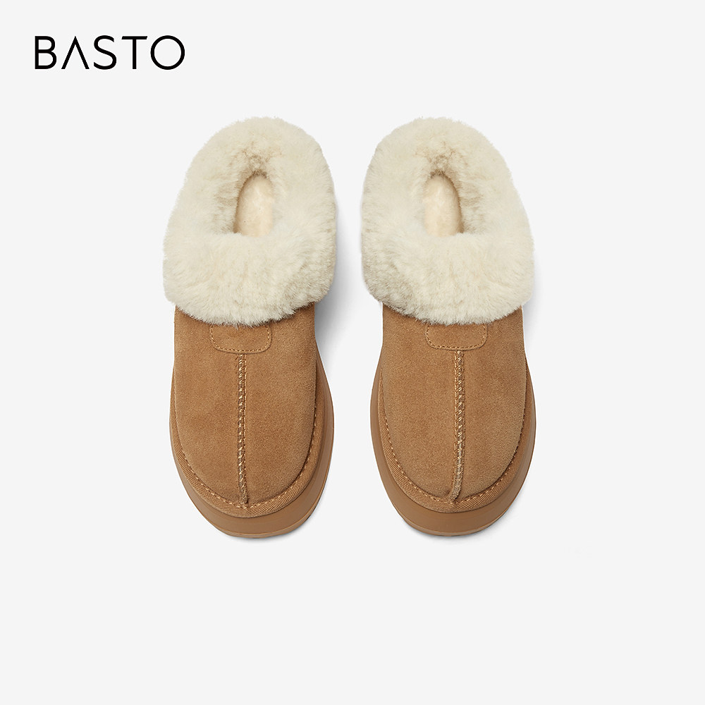 CD712DH3 简约休闲穆勒托平跟女毛毛鞋 百思图奥莱冬季 新款