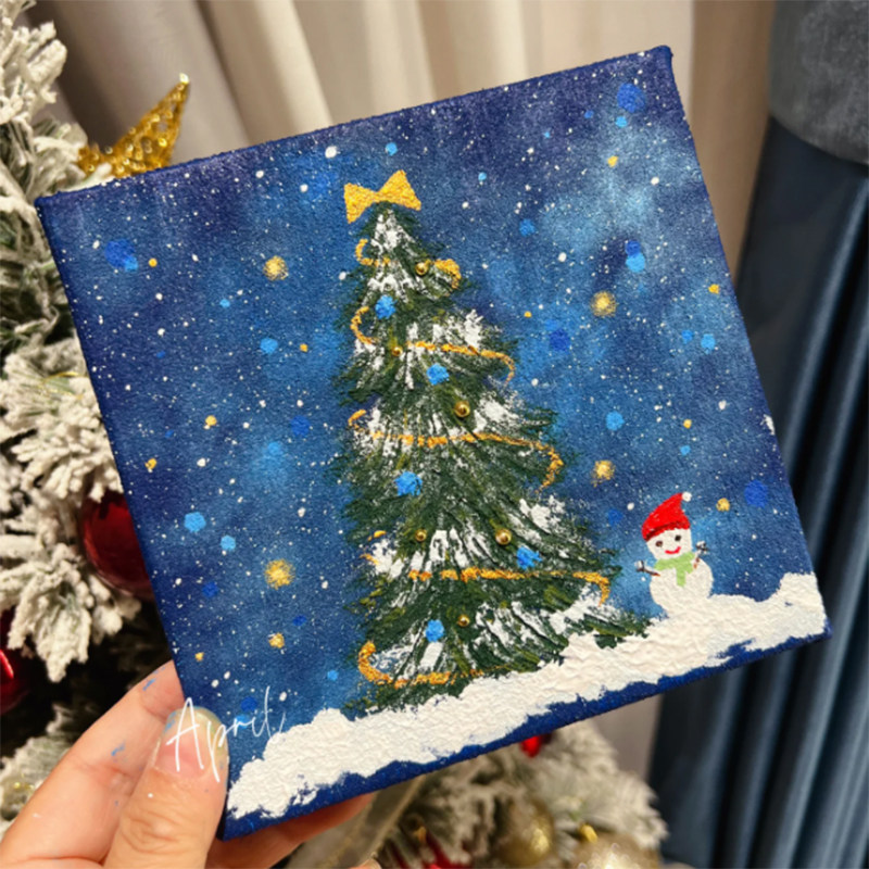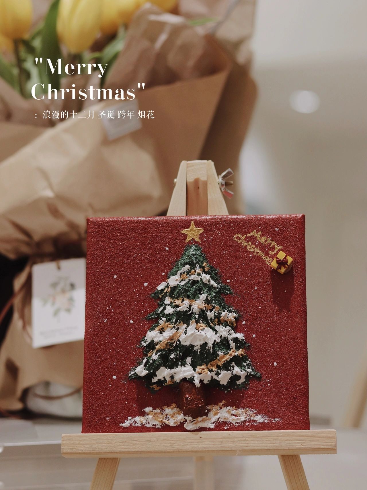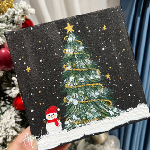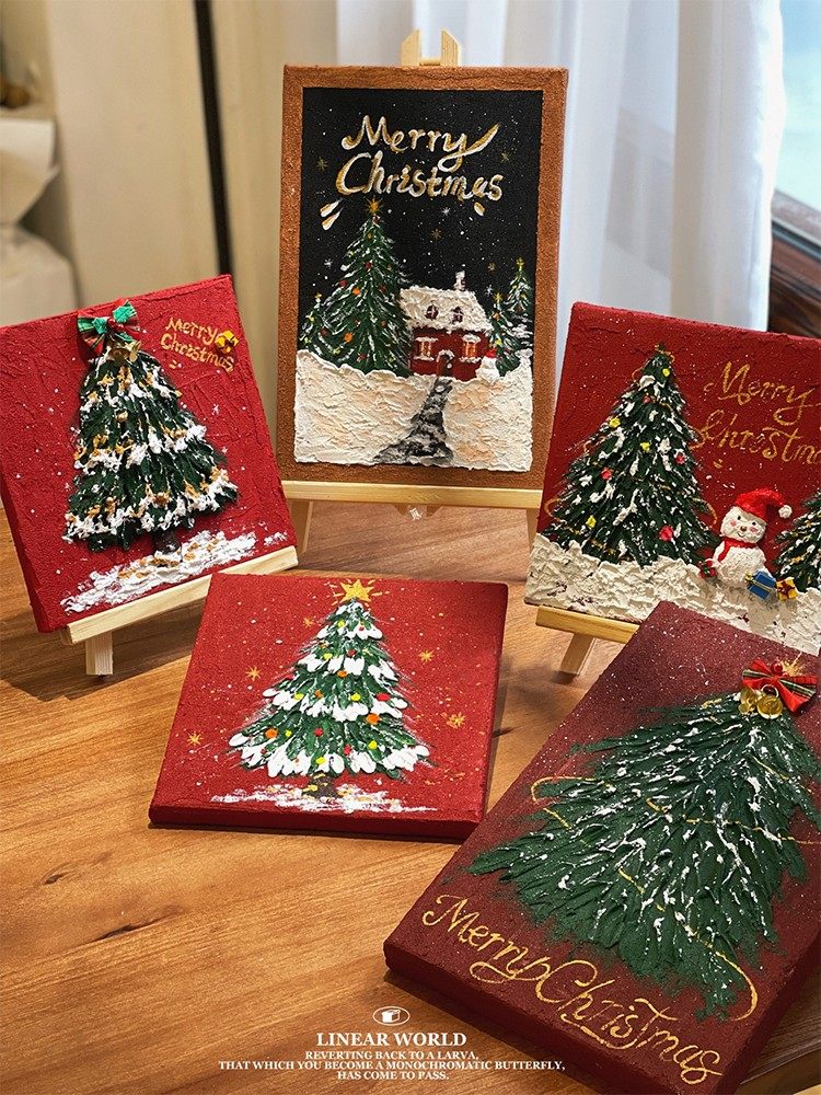 圣诞节手工石英砂丙烯肌理画diy材料包数字油画圣诞树填色浮雕画