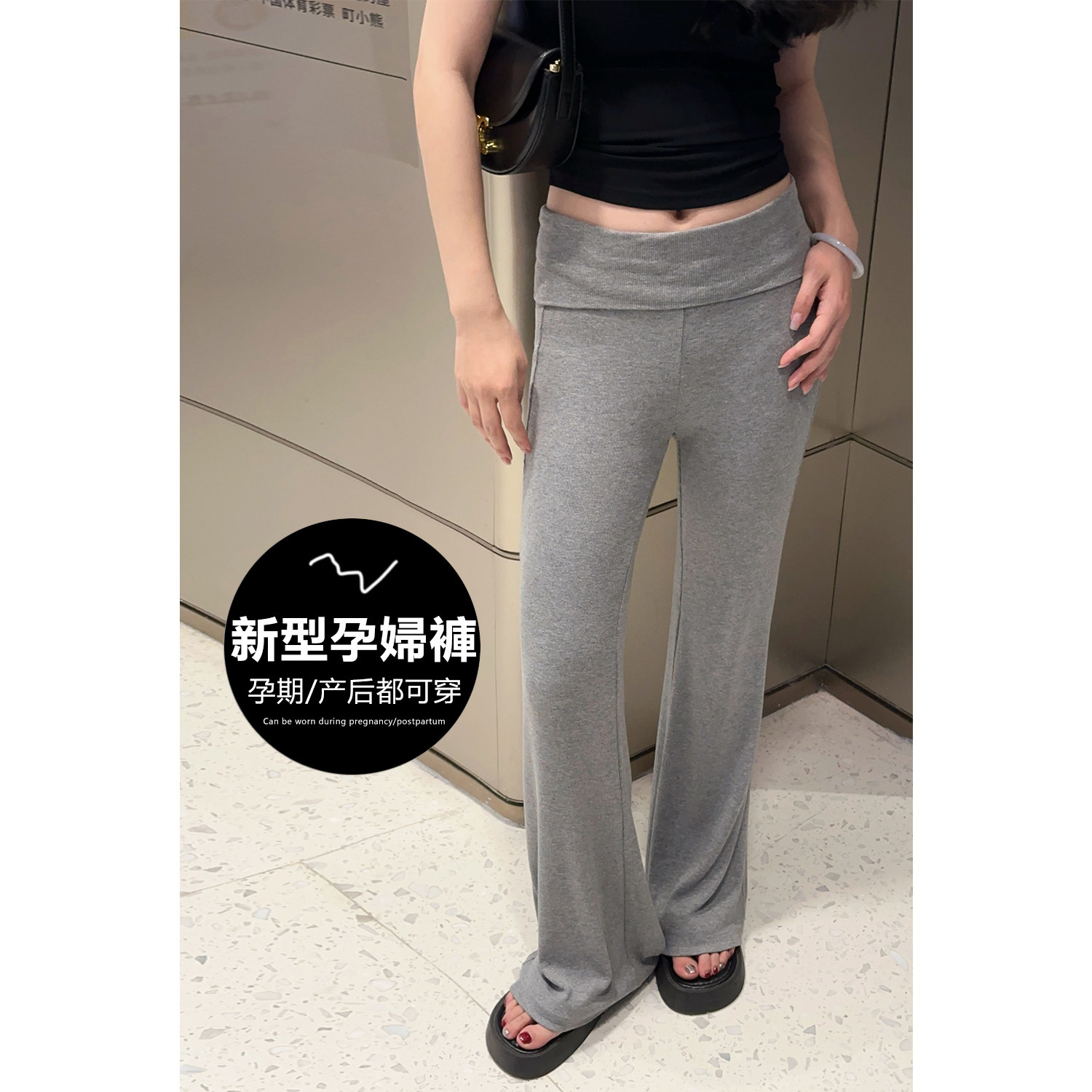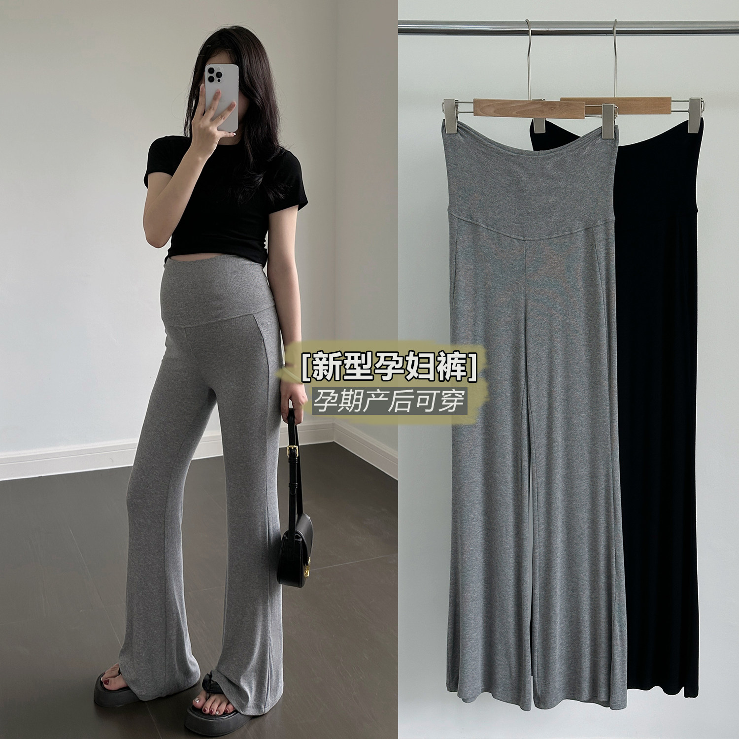 孕期不勒肚子外穿托腹打底裤 加绒2025新款 子秋冬季 孕妇微喇拖地裤