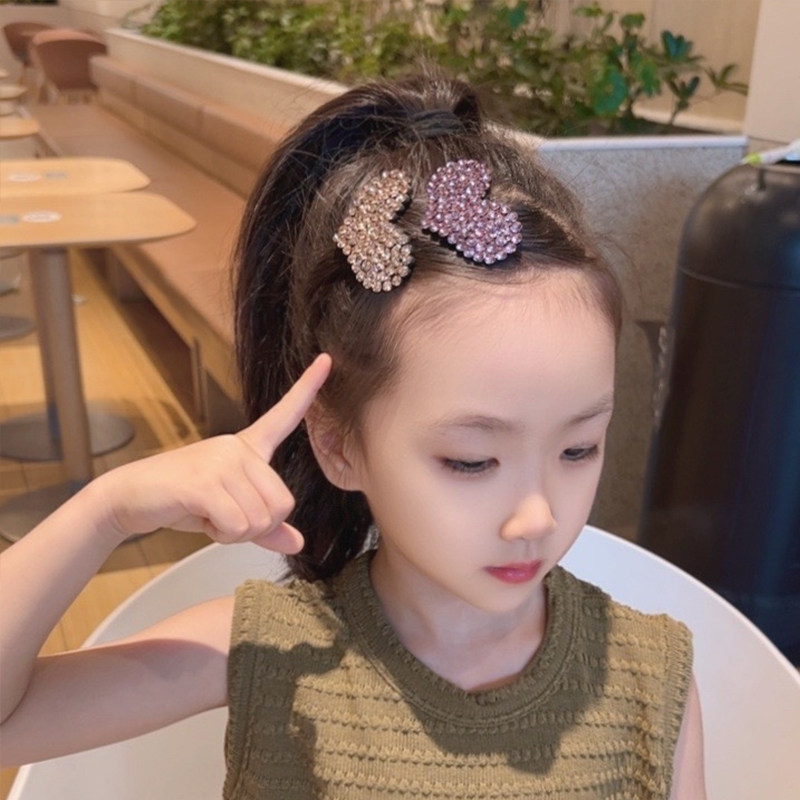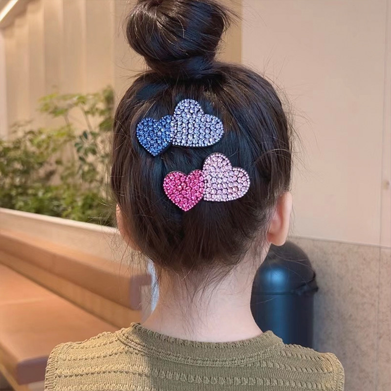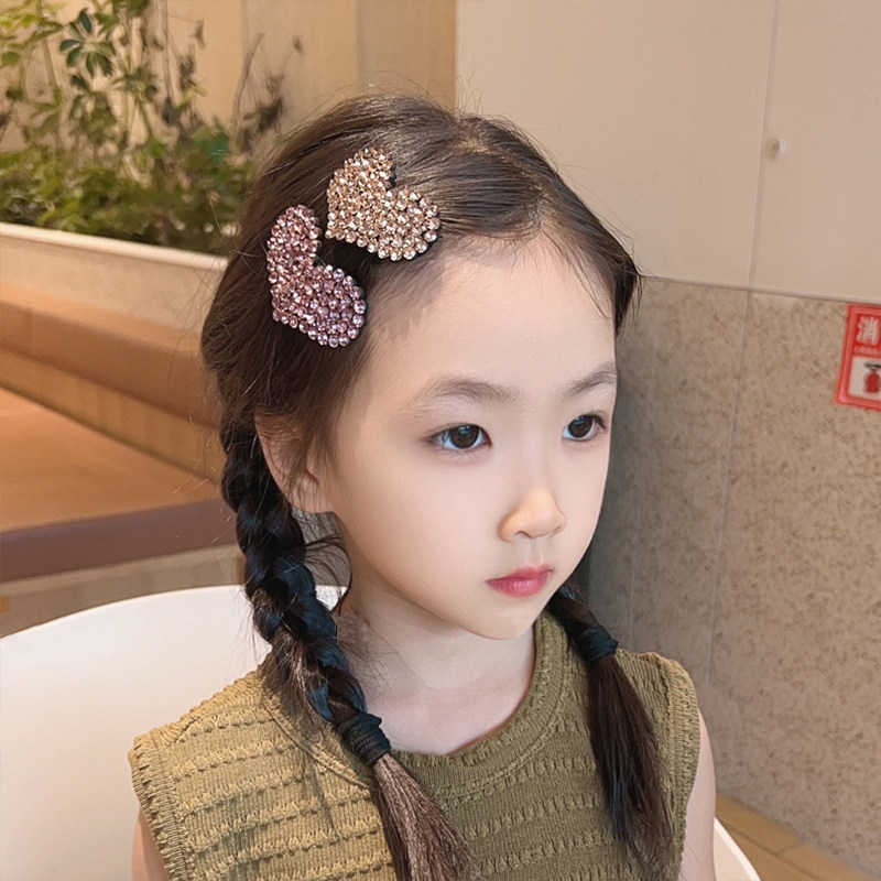 儿童满钻爱心发夹新款 精致侧边刘海夹碎发神器小女孩顶夹闪钻头饰