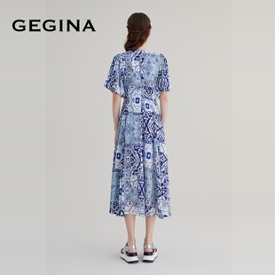 时髦高级感裙 高腰轻薄连衣裙短袖 GEGINA吉吉娜女装 春夏商场同款