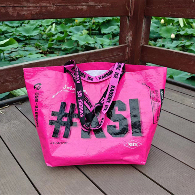 超火玫红编织袋购物袋手提袋环保袋买菜袋子骚粉色时尚 单肩背女包