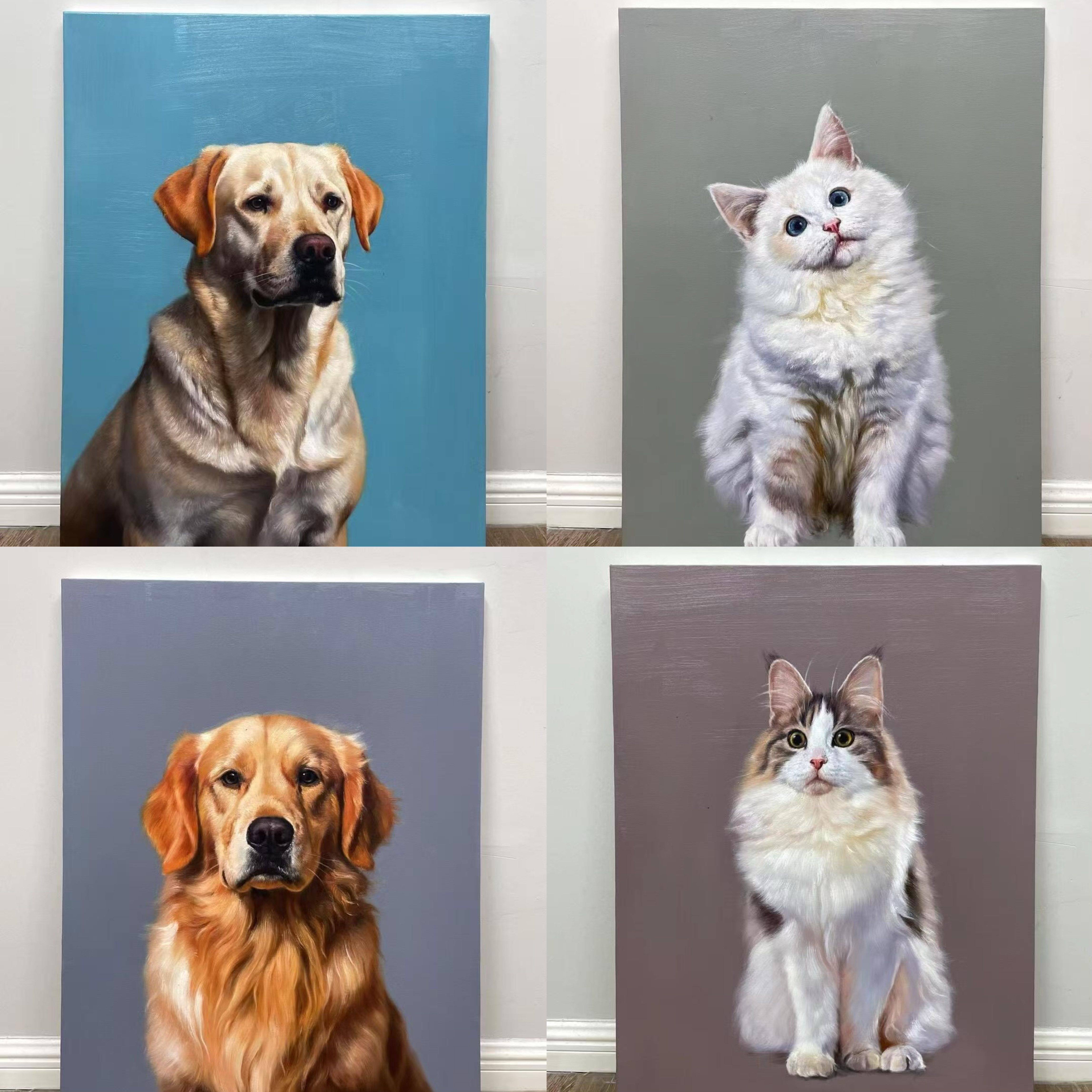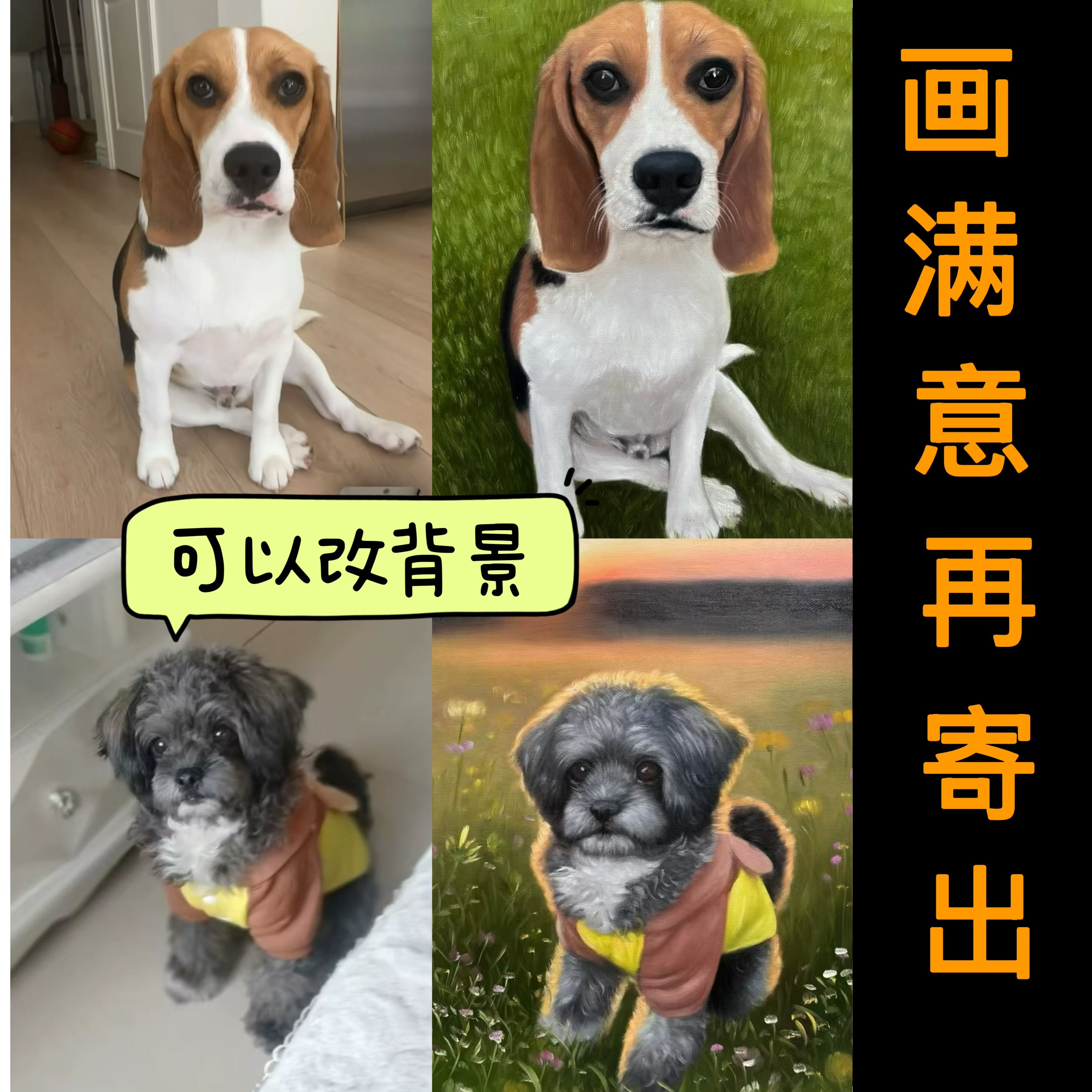猫咪小狗狗油画定制照片人物纯手绘肖像装 饰画自画像宠物来图定制