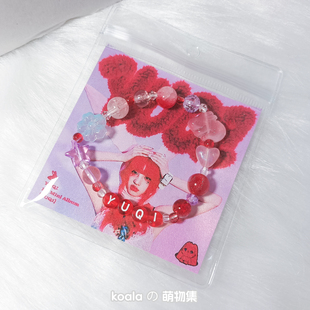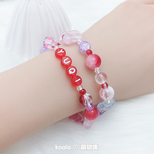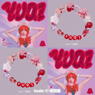 Gidle宋雨琦yuqi应援手链红色系兔子串珠饰品日韩idle女娃手串diy