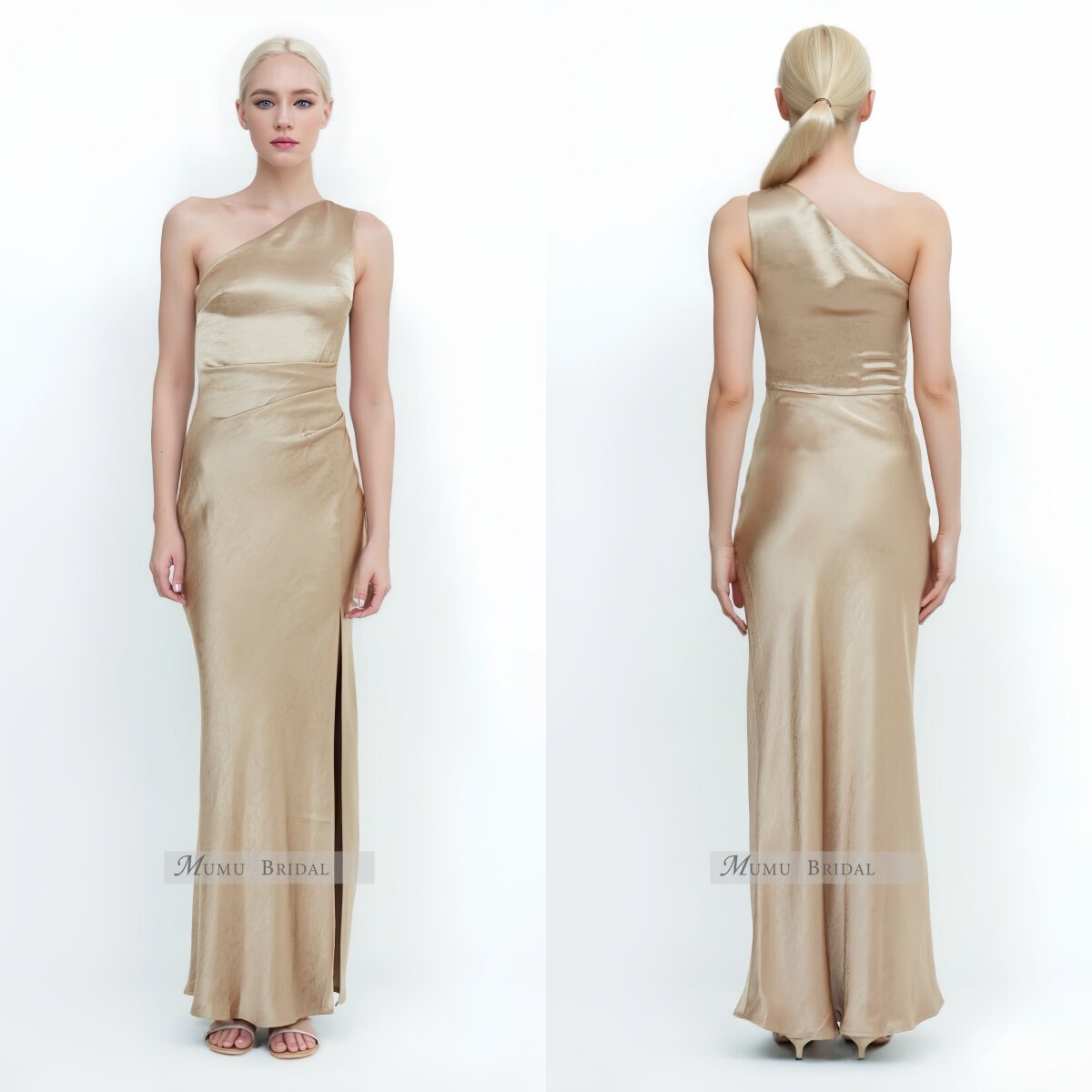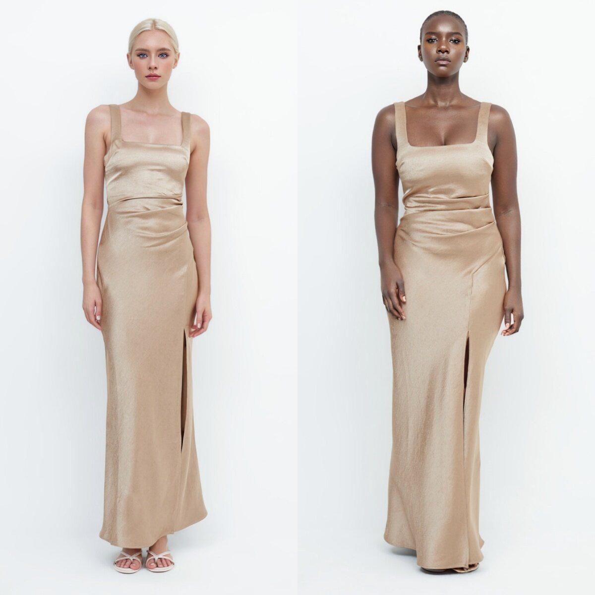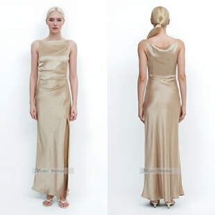 香槟色缎面伴娘服礼服裙子日常平时可穿高级小众简单大方大码 胖mm