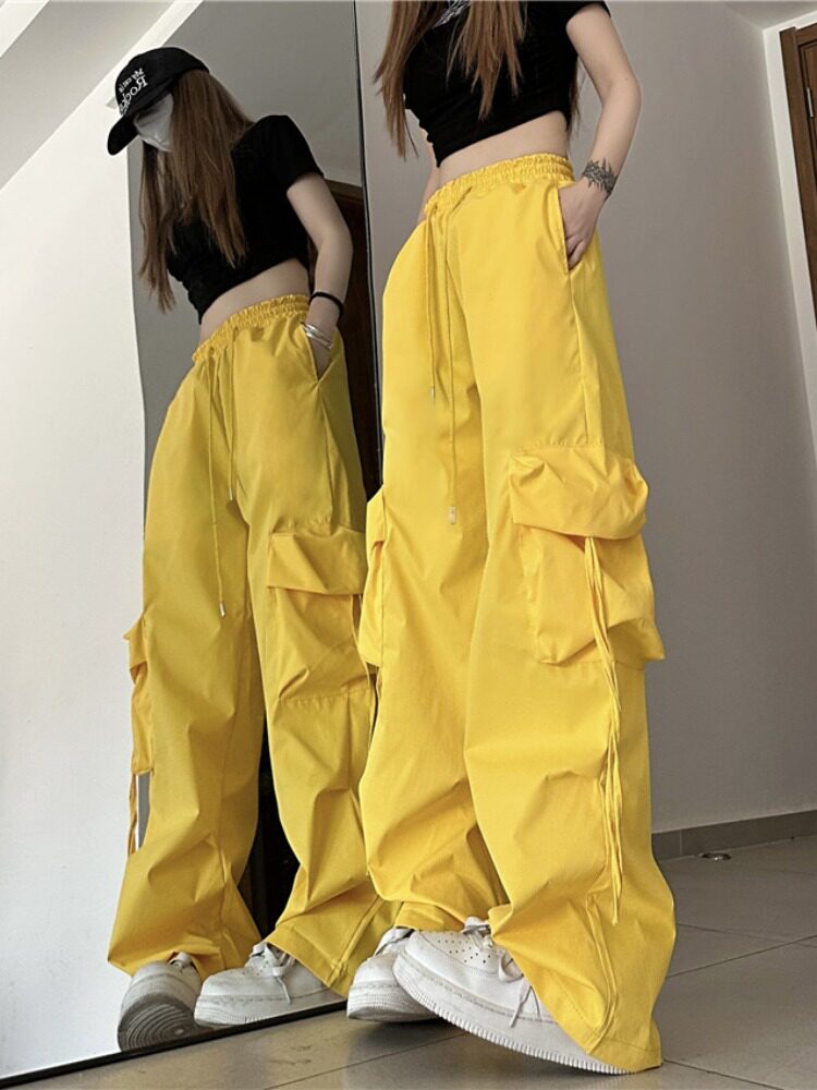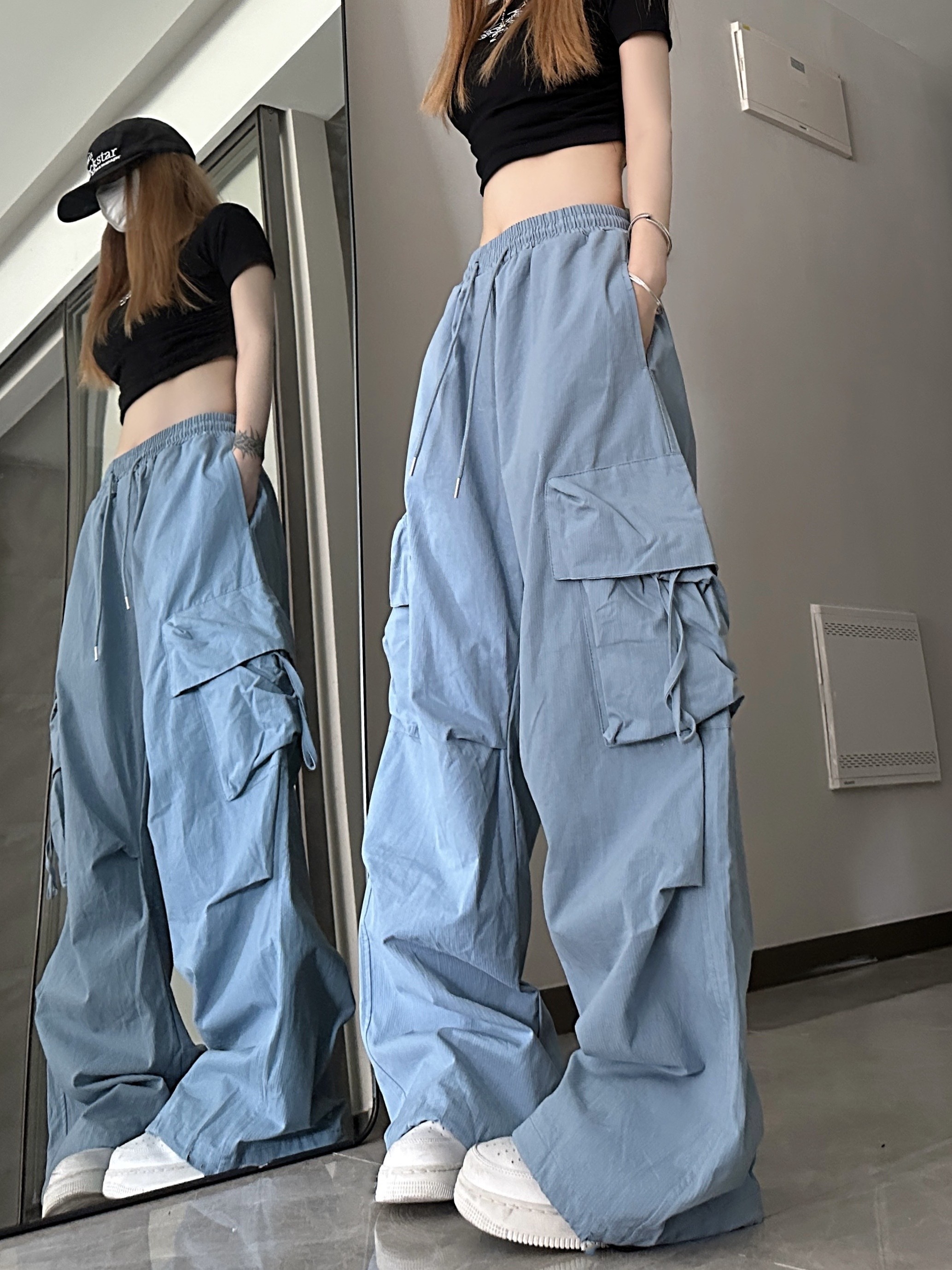 高腰阔腿设计感小众宽松休闲直筒长裤 男女可穿美式 夏季 裤 复古工装