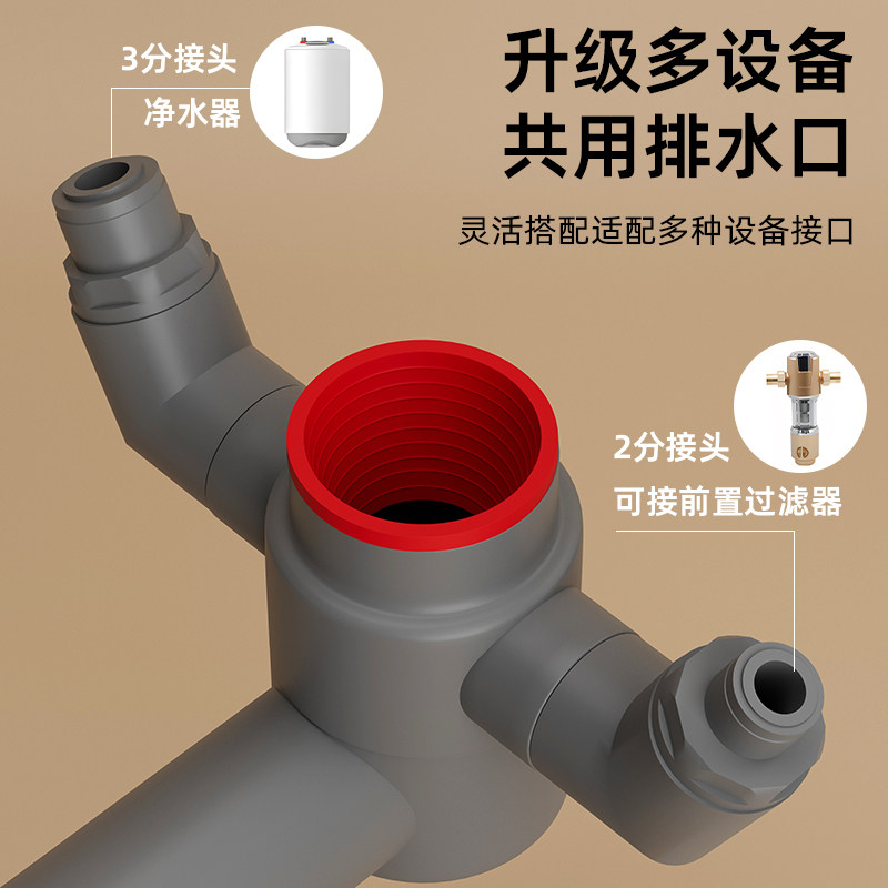 厨房下水管三通分水阀前置过滤器排水管道洗碗机净水器多功能接头