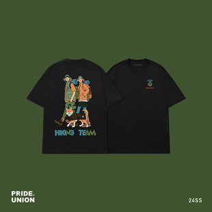 男TEE 印花宠物柴犬登山宽松短袖 PRIDE UNION原创设计超重磅美式
