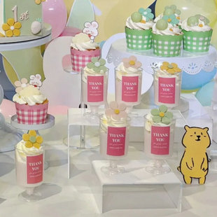 多巴胺甜品台装 饰thankyou慕斯杯推推乐贴纸彩色圆形布丁杯封口贴