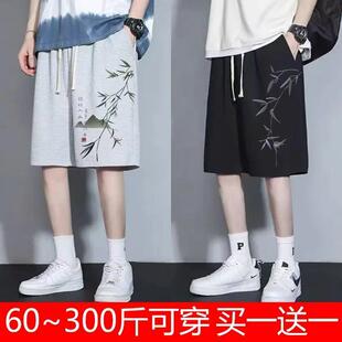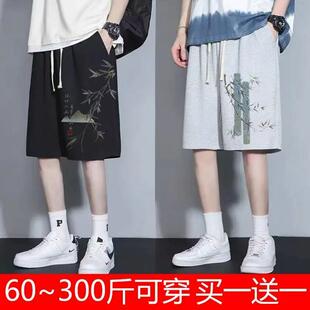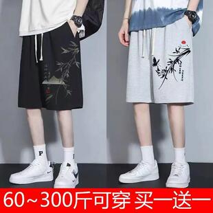 薄款 加肥加大码 胖子宽松显瘦透气运动阔脚五分裤 男夏季 潮 国潮短裤