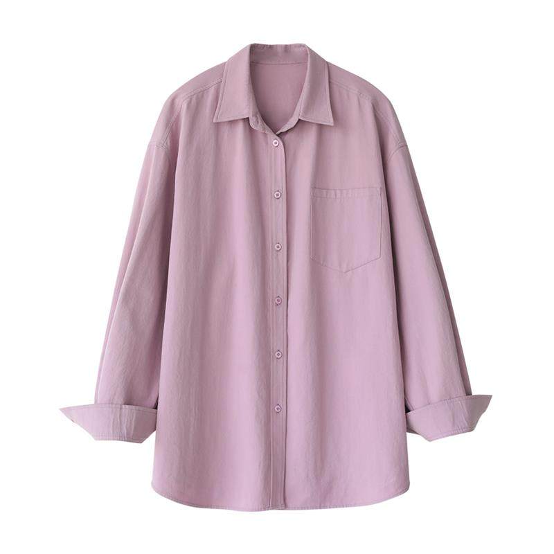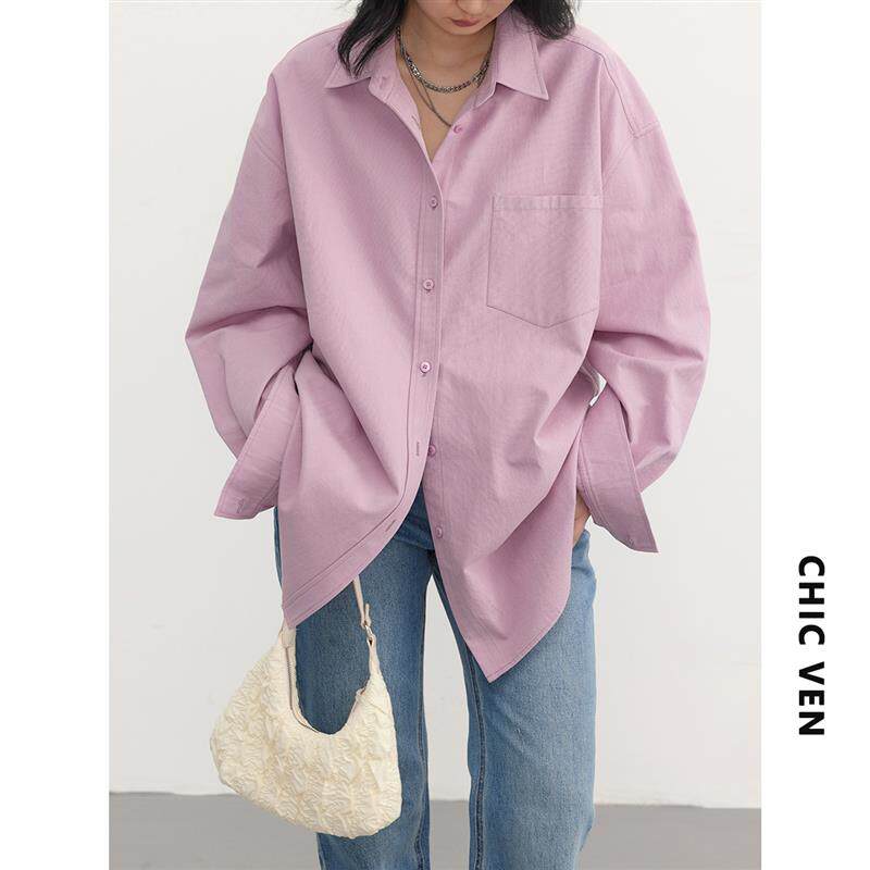 上衣女冷淡高级感长袖 休闲宽松粉色衬衫 衬衣 新款 CHICVEN2024春装