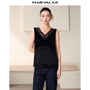 蕾丝雪纺背心简约上衣女 纯色短款 曼德诗设计感吊带2026春季 新款