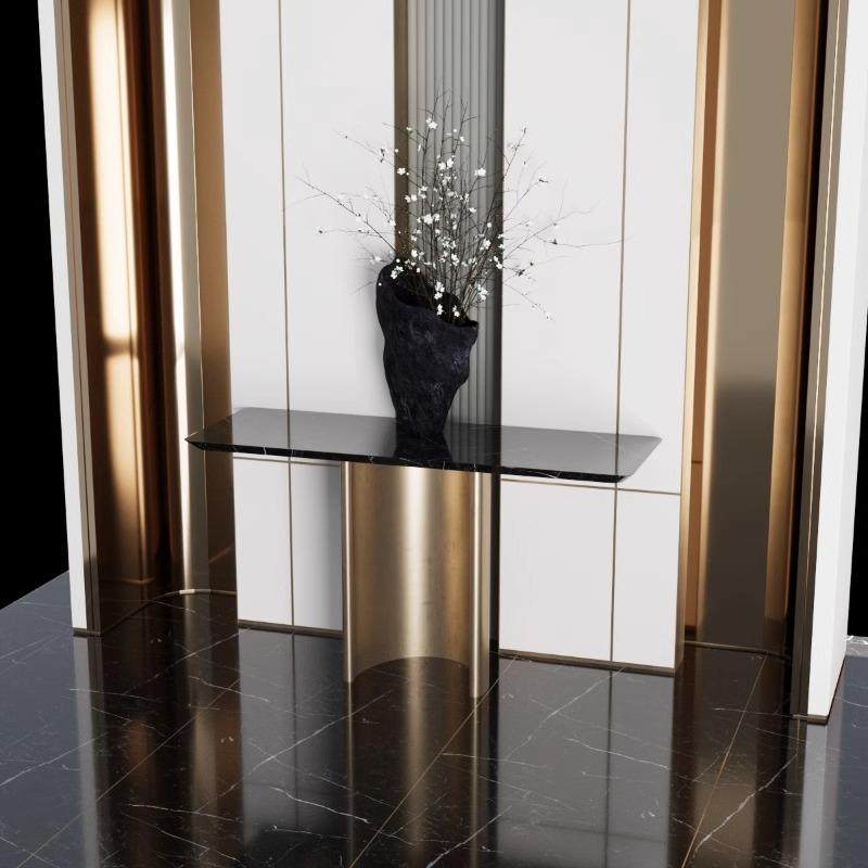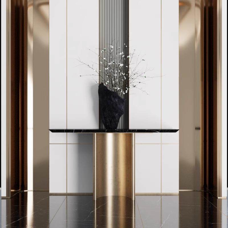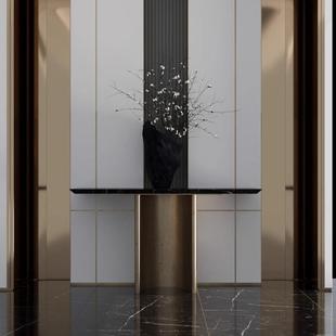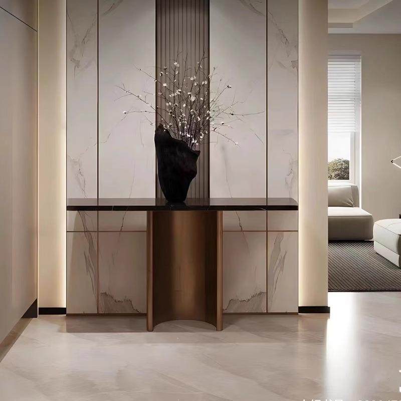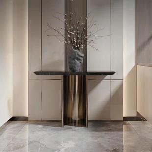 轻奢岩板玄关台入户客厅不锈钢靠墙玄关桌现代简约走廊过道装 饰柜