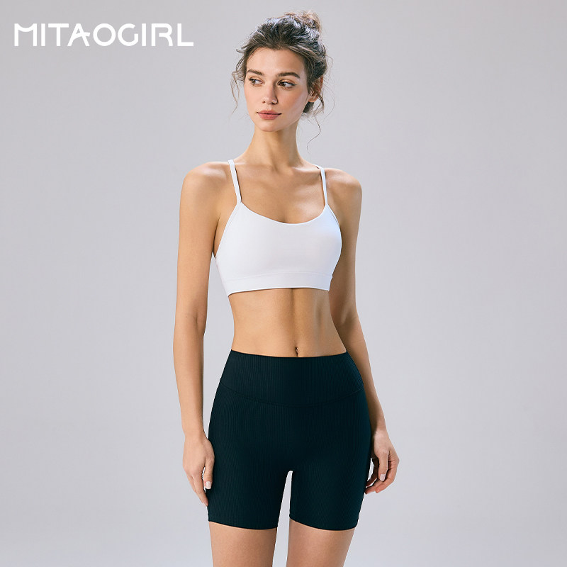 mitaogirl肯豆运动内衣女性感细肩带白色健身瑜伽服美背文胸套装