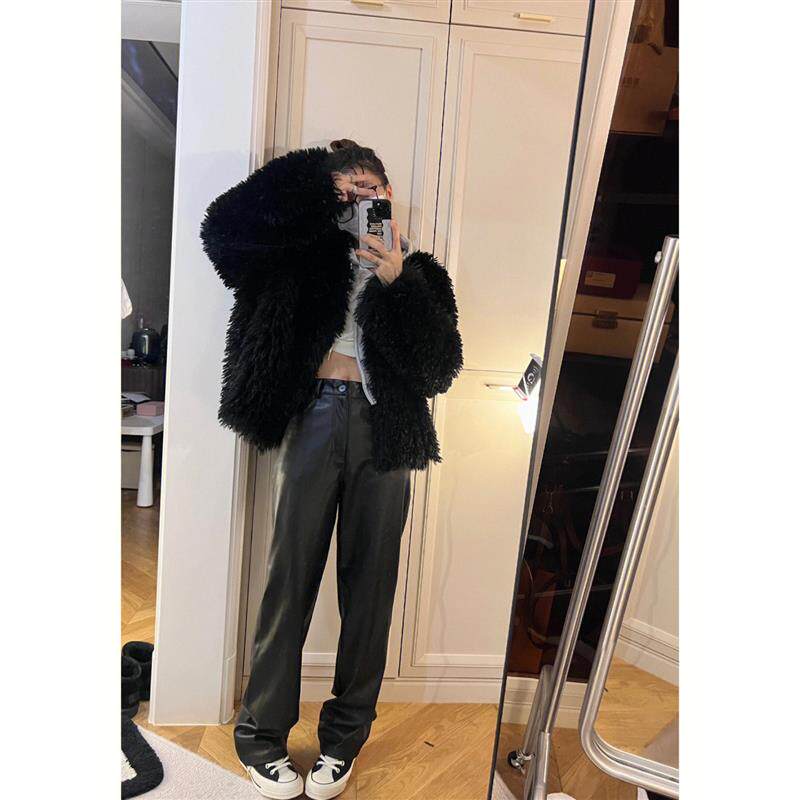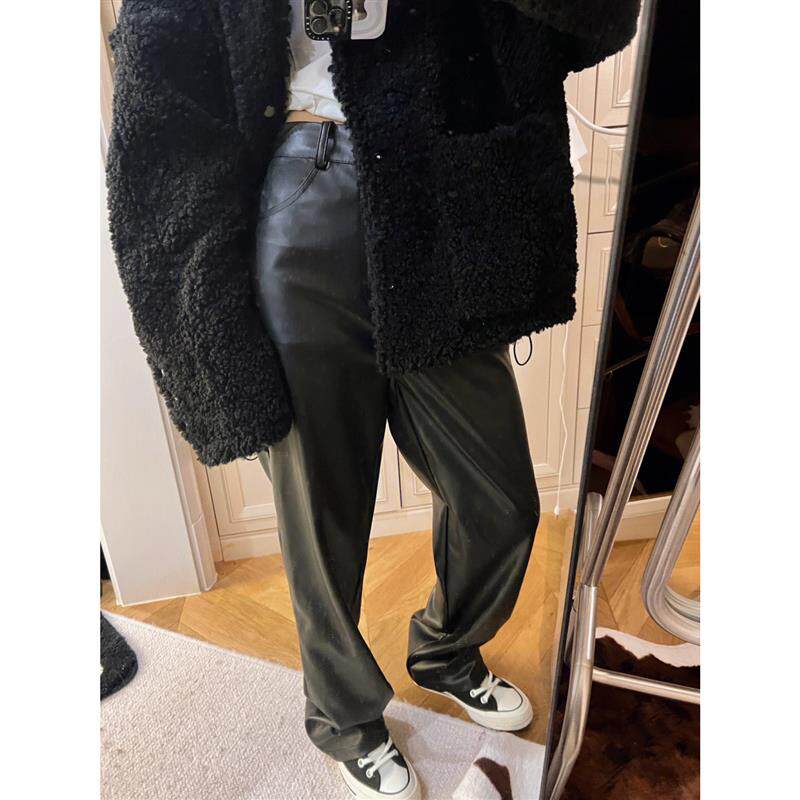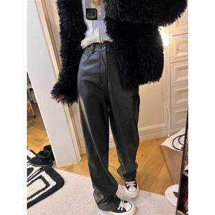 磨毛皮裤 rose同款 阔腿加长拖地裤 子女秋冬高腰休闲宽松直筒窄版 裤