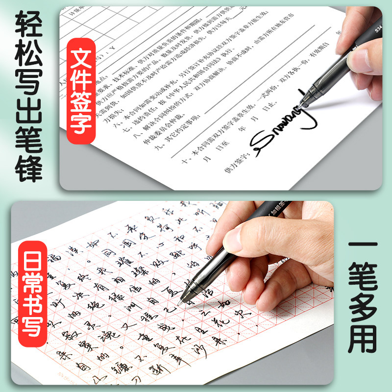 得力黑色练字笔签字笔硬笔书法专用笔大容量专用笔0.7中性笔1.0mm
