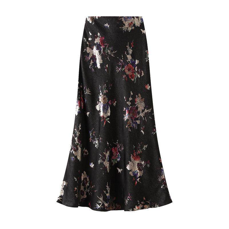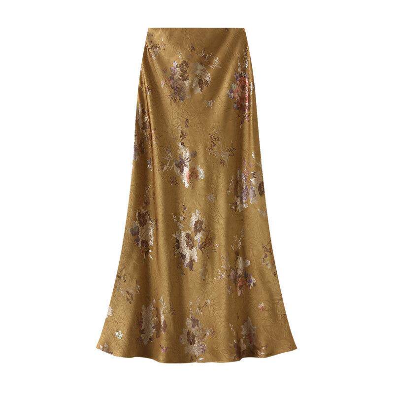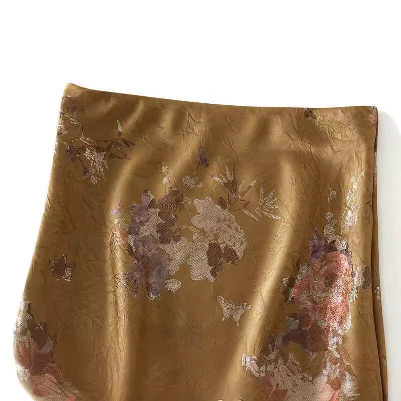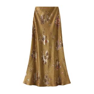 惊艳优雅时髦烫花褶皱高腰半裙女长款 5定制 鱼尾裙子9902