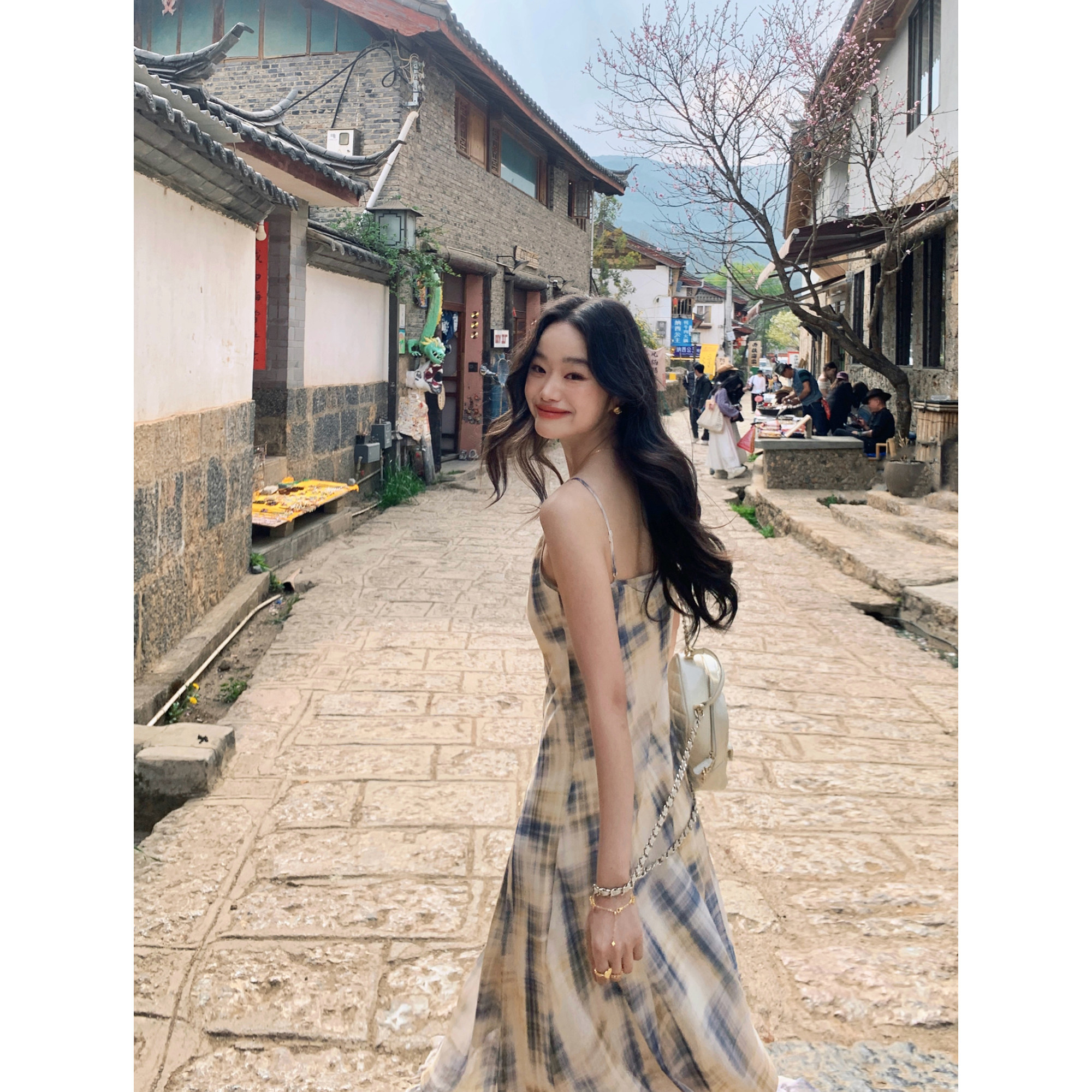 pusumede 菱格不规则吊带裙女连衣裙气质设计感小众长裙 温柔紫调