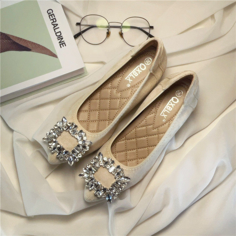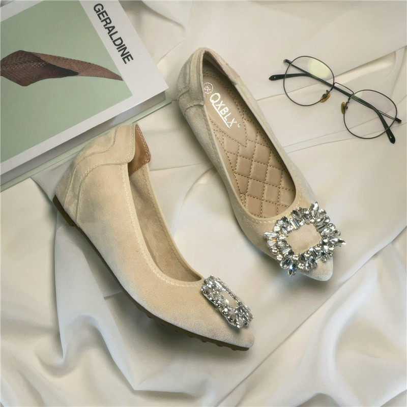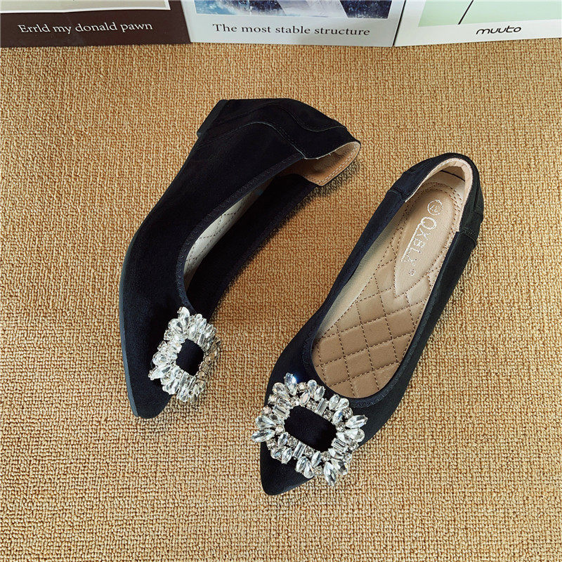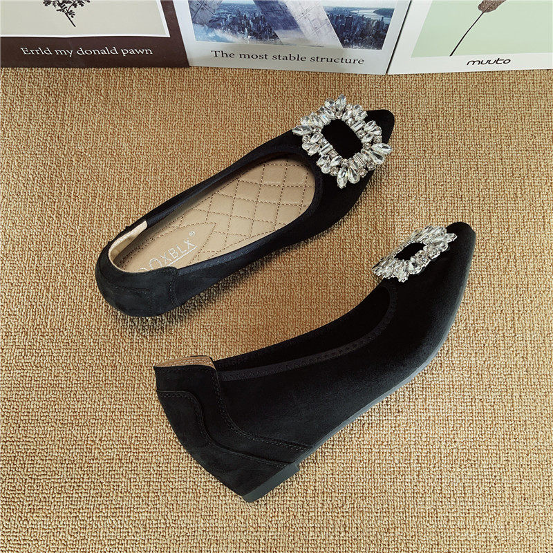 女鞋 水钻绒面尖头软底小码 女 小个子内增高豆豆鞋 33单鞋 新款